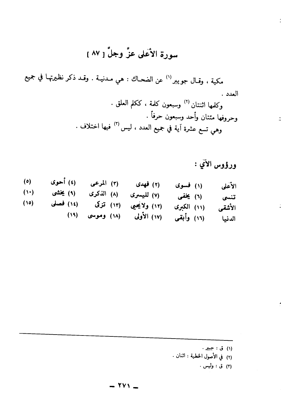 وكلمها اثْنَتَانِ وَسَبْعُونَ كلمة ككلم العلق