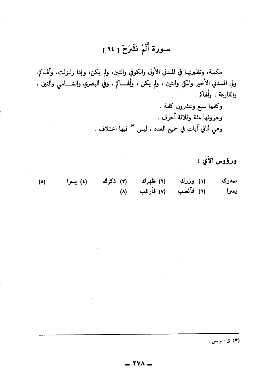 مَكِّيَّة ونظيرتها فِي الْمدنِي الأول والكوفي والتين وَلم يكن وَإِذا زلزلت وألهاكم