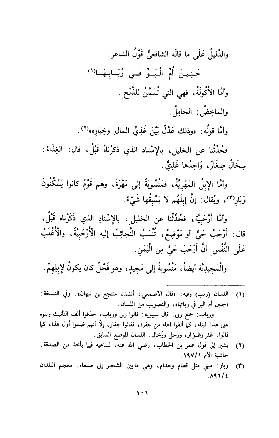 وأمَّا أَرْحَبِيَّة، فحُدِّثْنا عن الخليلِ، بالإسْنادِ الذي ذَكَرْناه قَبْلُ، قال: أَرْحَبُ حَيٌّ أو مَوْضِعٌ، تُنْسَبُ النَّجائِبُ إليه الْأَرْحَبِيَّةُ، والْأغْلَبُ على النَّفْسِ أنَّ أَرْحَبَ حَيٌّ مِن الْيَمَنِ.