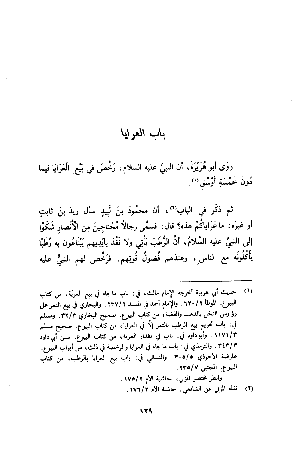 ثم ذكَر في الباب، أن محمودَ بنَ لبِيدٍ سأل زيدَ بنَ ثابتٍ أو غيرَه: ما عَرَاياكُمْ هذه؟ قال: فسمَّى رجالاً مُحْتاجِينَ مِن الْأنْصارِ شَكَوْا إلى النبيِّ عليه السَّلامُ، أنَّ الرُّطَبَ يَأتِي ولا نَقْدَ بأيْديهم يَبْتَاعُون به رُطَبًا يَأكُلُونَه مع الناسِ، وعندَهم فُضولُ قُوتِهم. فرَخَّصَ لهم النبيُّ عليه