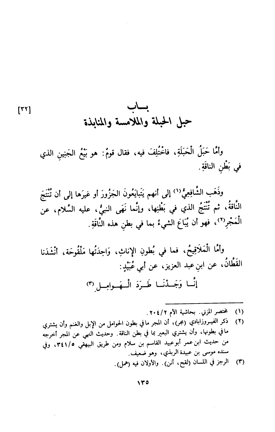 وذَهَبَ الشَّافِعِيُّ إلى أنهم يَتَبَايَعُونَ الجَزُورَ أو غيرَها إلى أن تُنْتَجَ النَّاقَةُ، ثم تُنْتَجَ الذي في بَطْنِها، وإنَّما نَهَى النبيُّ، عليه السَّلام، عن الْمَجْرِ، فهو أن يُباعَ الشيءُ بما في بطنِ هذه النَّاقَةِ.