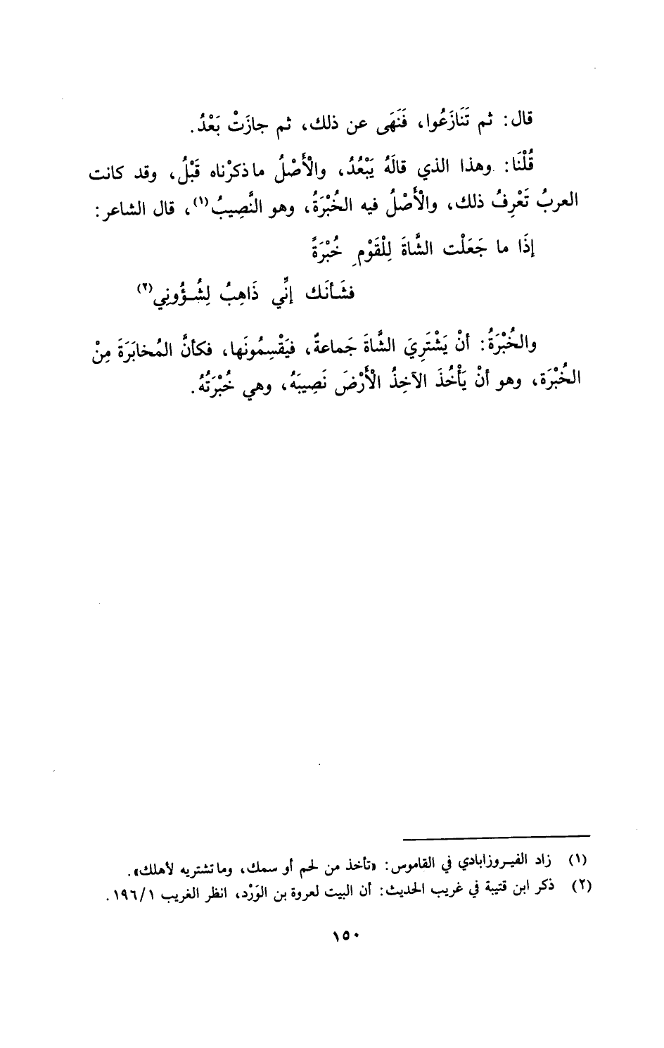 قُلْنا: وهذا الذي قالَهُ يَبْعُدُ، والْأصْلُ ما ذكرْناه قَبْلُ، وقد كانت العربُ تَعْرِفُ ذلك، والْأصْلُ فيه الخُبْرَةُ، وهو النَّصيبُ، قال الشاعر: