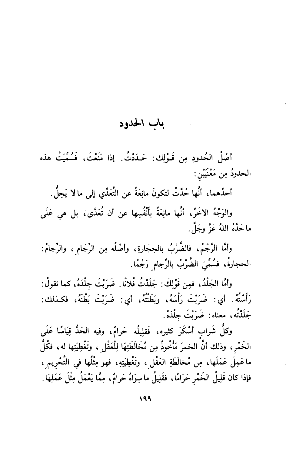 أصْلُ الحُدودِ مِن قَوْلِك: حَدَدْتُ. إذا مَنَعْتَ، فَسُمِّيَتْ هذه الحدودُ مِن مَعْنَيَيْنِ: