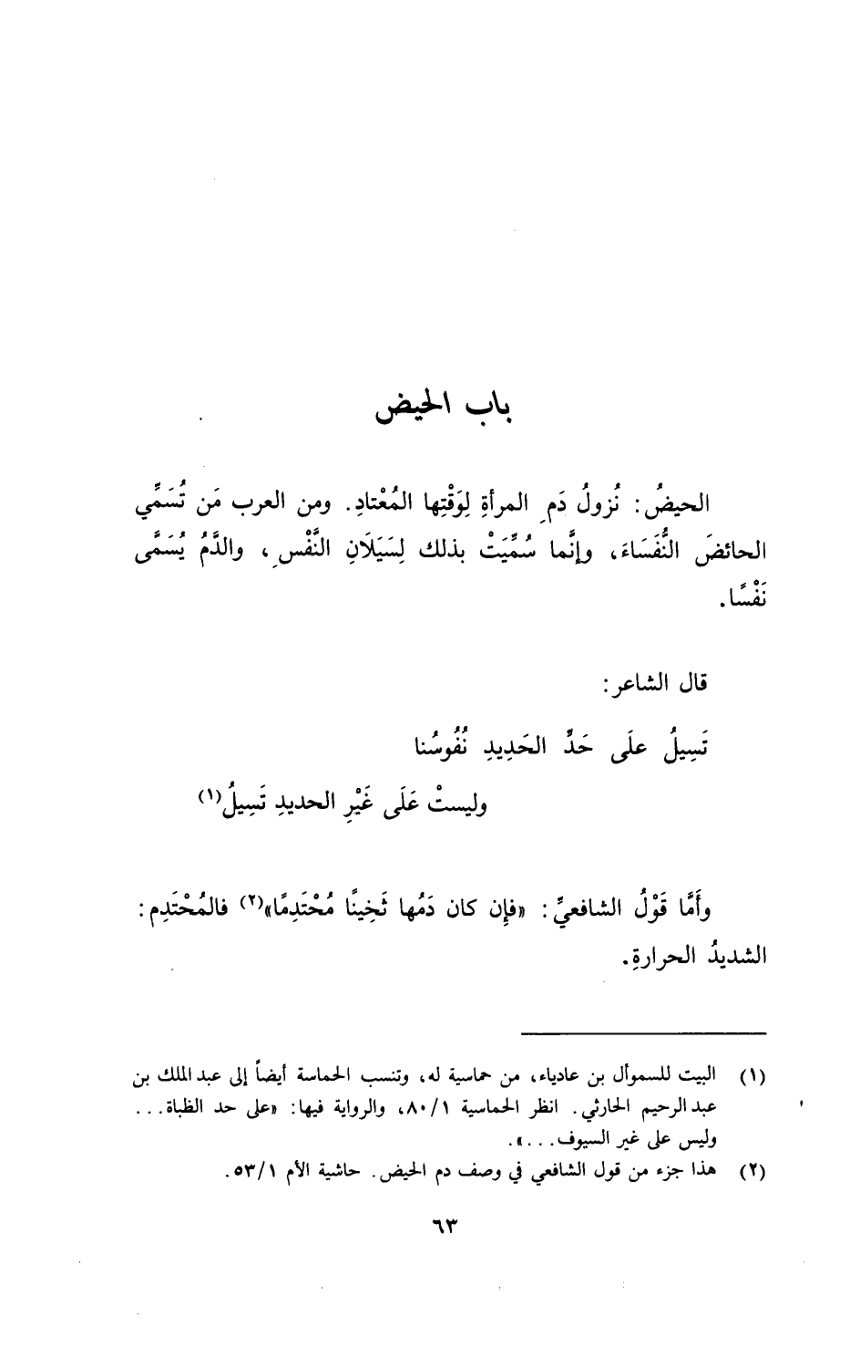 الحَيْضُ: نُزولُ دَمِ المرأةِ لِوَقْتِها المُعْتادِ. ومن العرب مَن تُسَمِّي الحائضَ النُّفَساءَ، وإنَّما سُمِّيَتْ بذلك لِسَيَلانِ النَّفْسِ، والدَّمُ يُسَمَّى نَفْسًا.