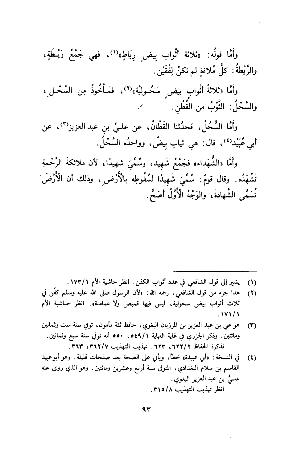 وأَمَّا "ثلاثةُ أثْوابٍ بِيضٍ سَحُولِيَّة"، فمَاخُوذٌ مِن السَّحْلِ، والسَّحْلُ: الثَّوْبُ من الْقُطْنِ.