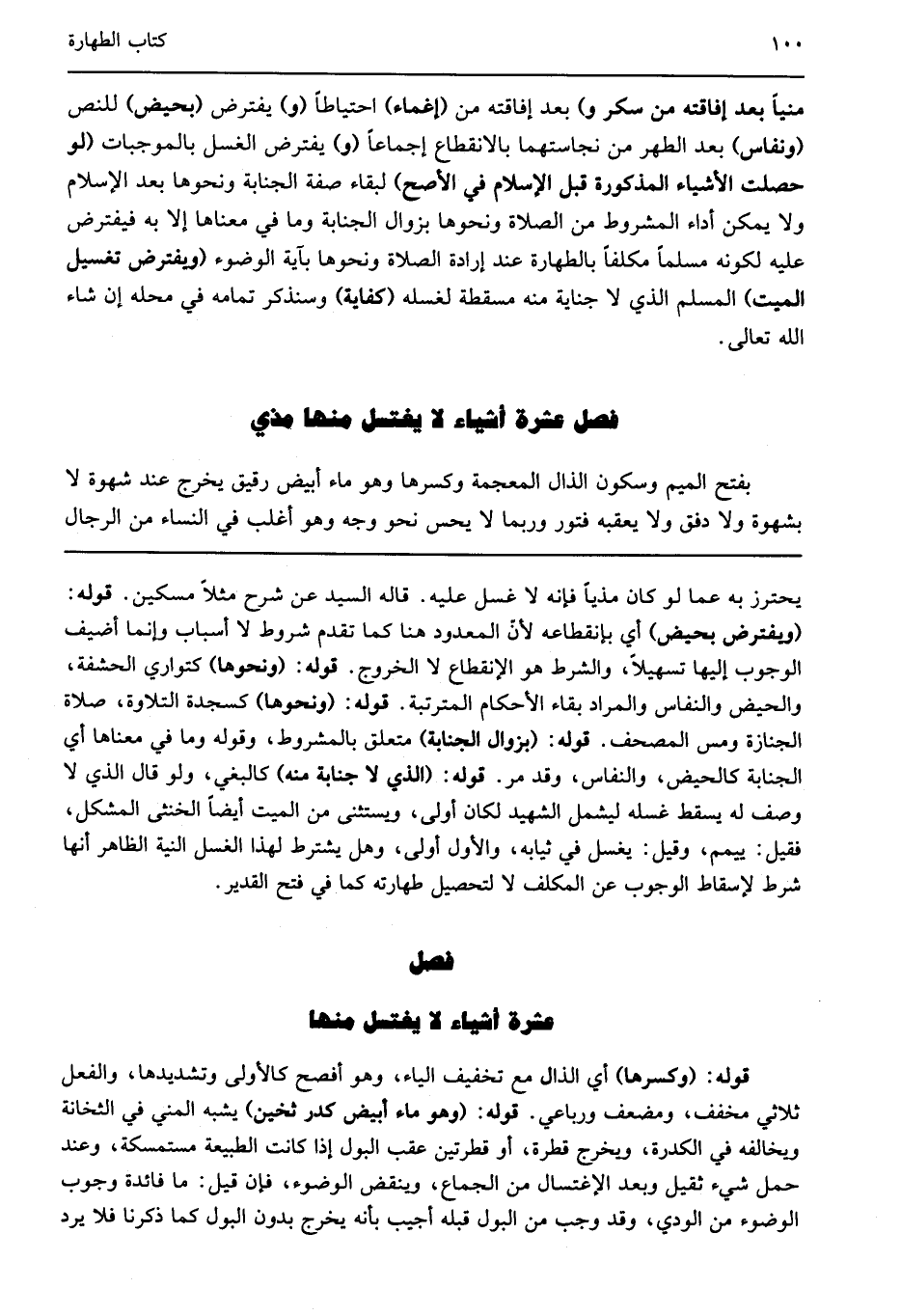 يحترز به عما لو كان مذيا فإنه لا غسل عليه قاله السيد عن شرح منلا مسكين قوله: "ويفترض بحيض" أي بإنقطاعه لأن المعدود هنا كما تقدم شروط لا أسباب وإنما أضيف الوجوب إليها تسهيلا والشرط هو الإنقطاع لا الخروج قوله: "ونحوها" كتواري الحشفة والحيض والنفاس والمراد بقاء الأحكام المترتبة قوله: "ونحوها" كسجدة التلاوة وصلاة الجنازة ومس المصحف قوله: "بزوال الجنابة" متعلق بالمشروط وقوله وما في معناها أي الجنابة كالحيض والنفاس وقد مر قوله: "الذي لا جنابة منه" كالبغي ولو قال الذي لا وصف له يسقط غسله ليشمل الشهيد لكان أولى ويستثنى من الميت أيضا الخنثى المشكل فقيل ييمم وقيل يغسل في ثيابه والأول أولى وهل يشترط لهذا الغسل النية الظاهر أنها شرط لإسقاط الوجوب عن المكلف لا لتحصيل طهارته كما في فتح القدير.