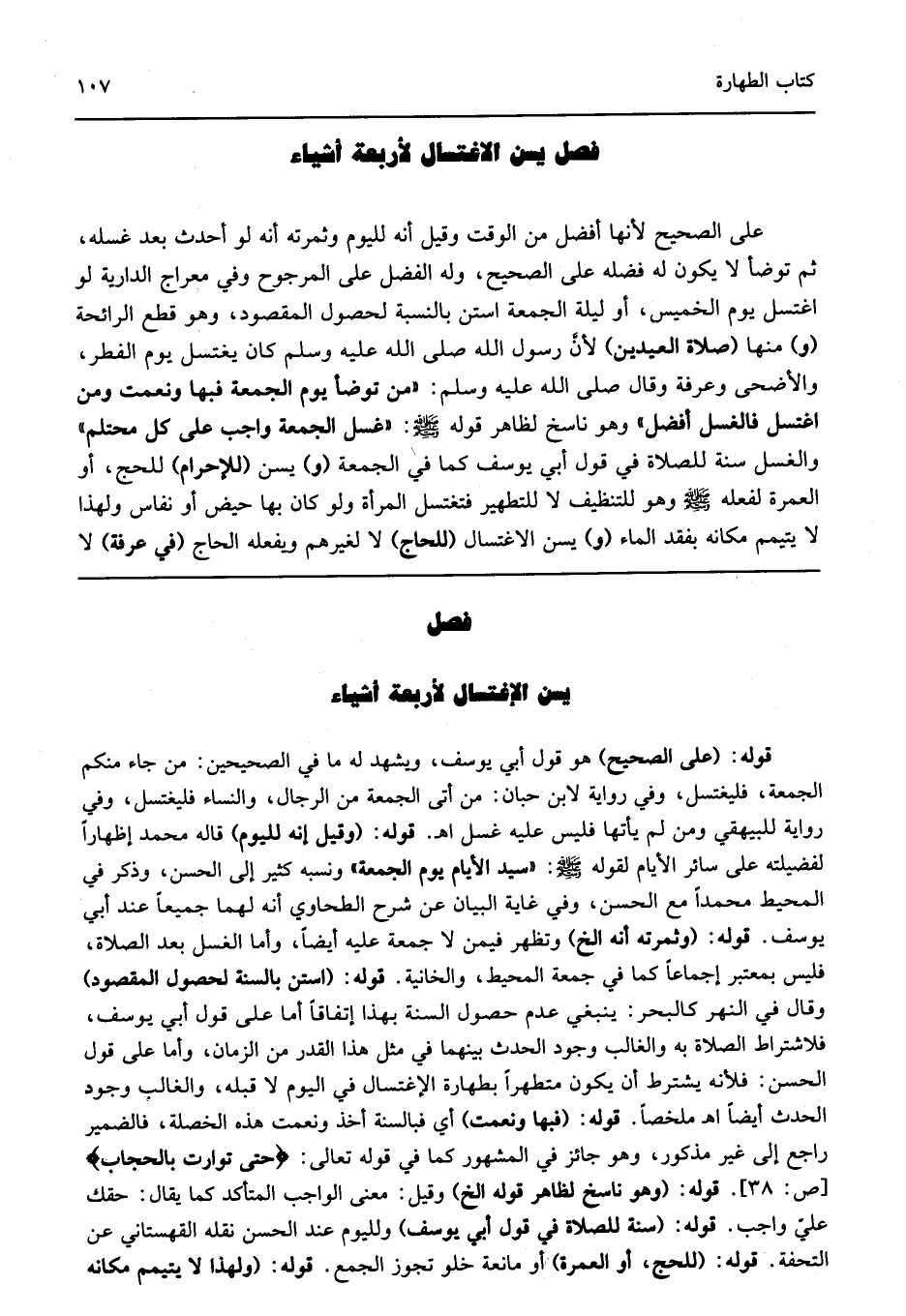 فصل يسن الإغتسال لأربعة أشياء.