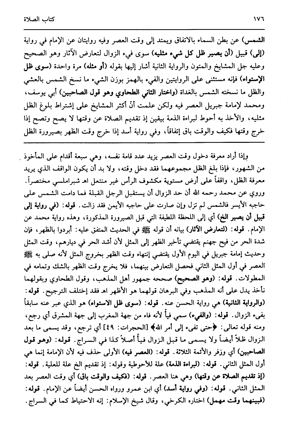 الشمس" عن بطن السماء بالاتفاق ويمتد إلى وقت العصر وفيه روايتان عن الإمام في رواية "إلى" قبيل " أن يصير ظل كل شيء مثليه" سوى فيء الزوال لتعارض الآثار وهو الصحيح وعليه جل المشايخ والمتون والرواية الثانية أشار إليها بقوله "أو مثله" مرة واحدة "سوى ظل الاستواء" فإنه مستثنى على الروايتين والفيء بالهمز بوزن الشيء ما نسخ الشمس بالعشي والظل ما نسخته الشمس بالغداة "واختار الثاني الطحاوي وهو قول الصاحبين" أبي يوسف ومحمد لإمامة جبريل العصر فيه ولكن علمت أن أكثر المشايخ على اشتراط بلوغ الظل مثليه والأخذ به أحوط لبراءة الذمة بيقين إذ تقديم الصلاة عن وقتها لا يصح وتصح إذا خرج وقتها فكيف والوقت باق اتفاقا وفي رواية أسد إذا خرج وقت الظهر بصيرورة الظل.