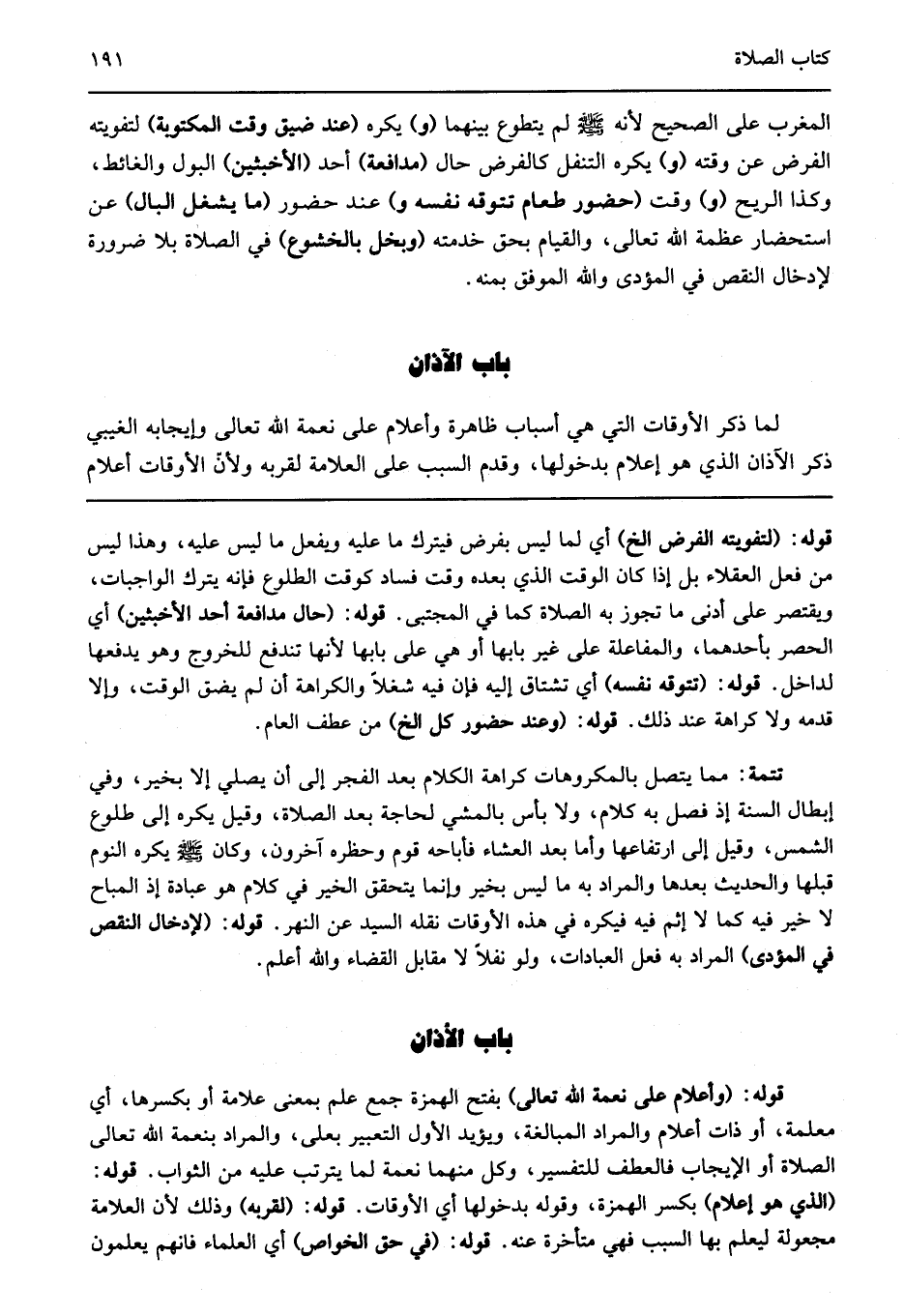قوله: "وأعلام على نعمة الله تعالى " بفتح الهمزة جمع علم بمعنى علامة أو بكسرها أي معلمة أو ذات أعلام والمراد المبالغة ويؤيد الأول التعبير بعلى والمراد بنعمة الله تعالى الصلاة أو الإيجاب فالعطف للتفسير وكل منهما نعمة لما يترتب عليه من الثواب قوله: "الذي هو إعلام" بكسر الهمزة وقوله بدخولها أي الأوقات قوله: "لقربه" وذلك لأن العلامة مجعولة ليعلم بها السبب فهي متأخرة عنه قوله: "في حق الخواص" أي العلماء فانهم يعلمون.