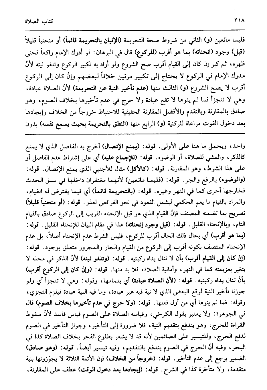 فليسا مانعين "و" الثاني من شروط صحة التحريمة "الإتيان بالتحريمة قائما" أو منحيا قليلا "قبل" وجود "انحنائه" بما هو أقرب "للركوع" قال في البرهان لو أدرك الإمام راكعا فحنى ظهره ثم كبر أن كان إلى القيام أقرب صح الشروع ولو أراد به تكبير الركوع وتلغو نيته لأن مدرك الإمام في الركوع لا يحتاج إلى تكبير مرتين خلافا لبعضهم وإن كان إلى الركوع أقرب لا يصح الشروع "و" الثالث منها "عدم تأخير النية عن التحريمة" لأن الصلاة عبادة وهي لا تتجزأ فما لم ينوها لا تقع عبادة ولا حرج في عدم تأخيرها بخلاف الصوم وهو صادق بالمقارنة وبالتقدم والأفضل المقارنة الحقيقية للاحتياط خروجا من الخلاف وإيجادها بعد دخول الوقت مراعاة للركنية "و" الرابع منها "النطق بالتحريمة بحيث يسمع نفسه" بدون