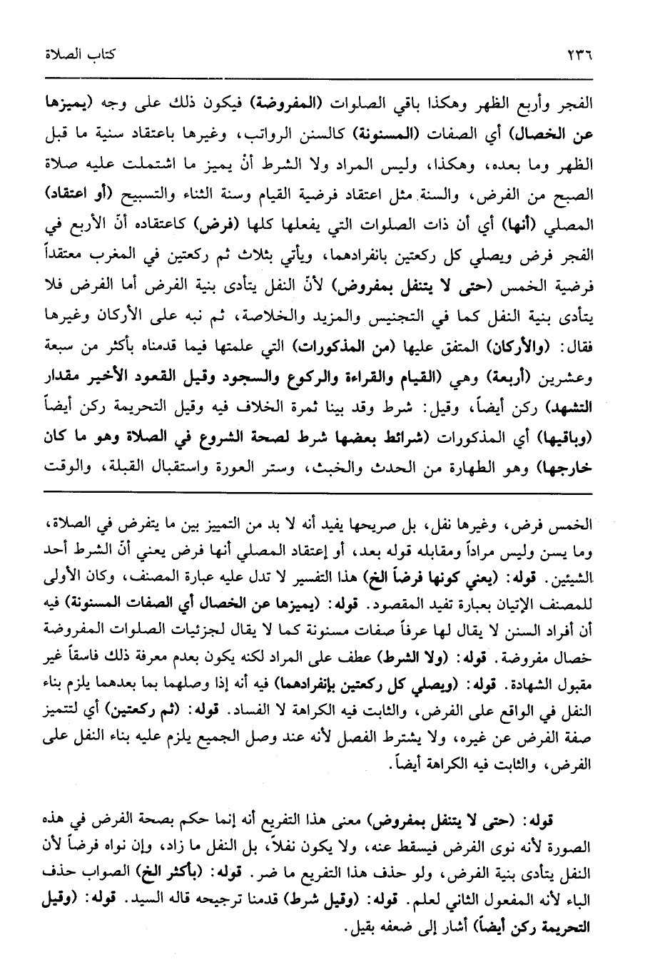 الخمس فرض وغيرها نفل بل صريحها يفيد أنه لا بد من التمييز بين ما يتفرض في الصلاة وما يسن وليس مرادا ومقابله قوله بعد أو إعتقاد المصلي أنها فرض يعني أن الشرط أحد الشيئين قوله: "يعني كونها فرضا الخ" هذا التفسير لا تدل عليه عبارة المصنف وكان الأولى للمصنف الإتيان بعبارة تفيد المقصود قوله: "يميزها عن الخصال أي الصفات المسنونة" فيه أن أفراد السنن لا يقال لها عرفا صفات مسنونة كما لا يقال لجزئيات الصلوات المفروضة خصال مفروضة قوله: "ولا الشرط" عطف على المراد لكنه يكون بعدم معرفة ذلك فاسقا غير مقبول الشهادة قوله: "ويصلي كل ركعتين بإنفرادهما" فيه أنه إذا وصلهما بما بعدهما يلزم بناء النفل في الواقع على الفرض والثابت فيه الكراهة لا الفساد قوله: "ثم ركعتين" أي لتتميز صفة الفرض عن غيره ولا يشترط الفصل لأنه عند وصل الجميع يلزم عليه بناء النفل على الفرض والثابت فيه الكراهة أيضا.