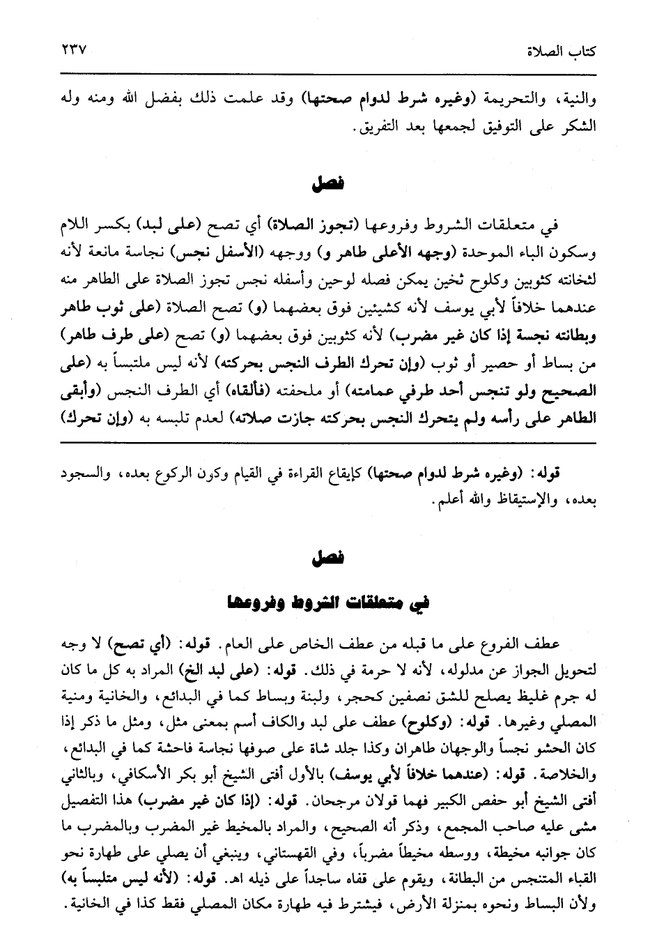 والنية والتحريمة "وغيره شرط لدوام صحتها" وقد علمت ذلك بفضل الله ومنه وله الشكر على التوفيق لجمعها بعد التفريق.