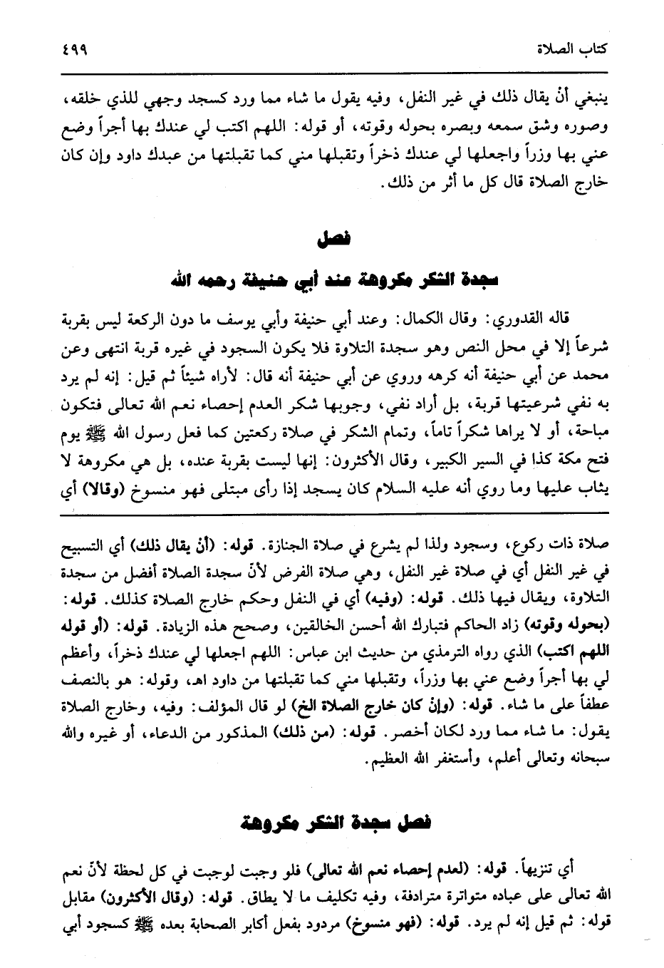 فصل سجدة الشكر مكروهة