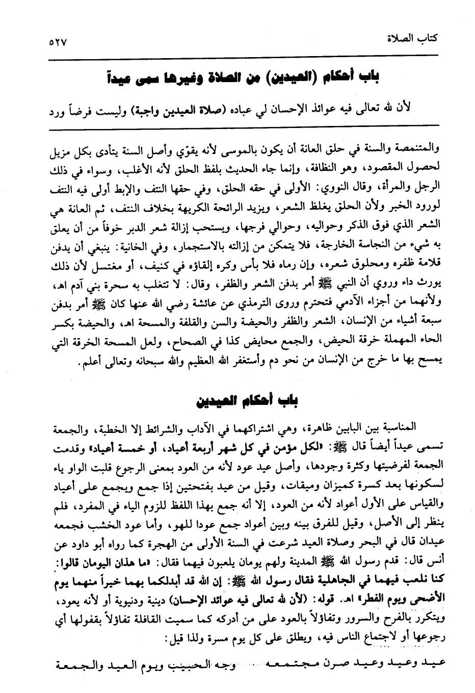 من الصلاة وغيرها سمي عيدا لأن لله تعالى فيه عوائد الإحسان إلى عباده "صلاة العيدين واجبة" وليست فرضا ورد