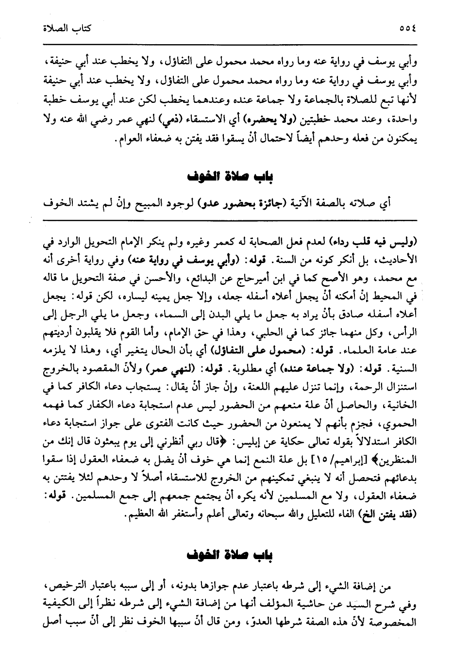 من إضافة الشيء إلى شرطه باعتبار عدم جوازها بدونه أو إلى سببه باعتبار الترخيص وفي شرح السيد عن حاشية المؤلف أنها من إضافة الشيء إلى شرطه نظرا إلى الكيفية المخصوصة لأن هذه الصفة شرطها العدو ومن قال أن سببها الخوف نظر إلى أن سبب أصل