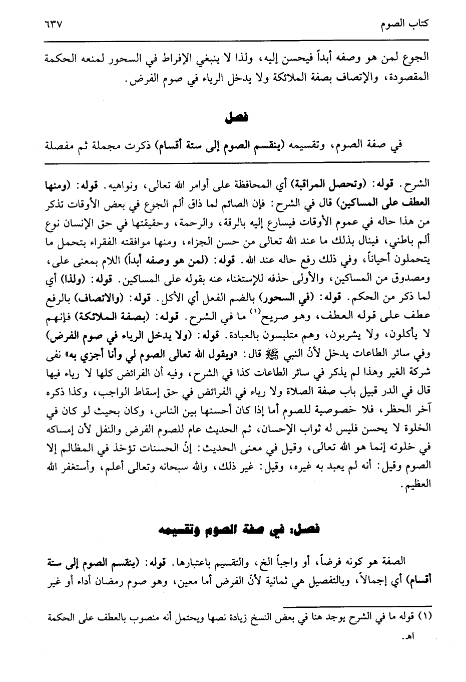 "ينقسم الصوم إلى ستة أقسام" ذكرت مجملة ثم مفصلة