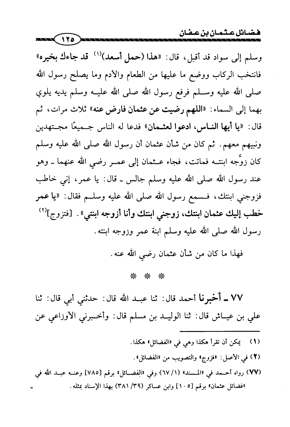 كتاب فضائل عثمان بن عفان لعبد الله بن أحمد