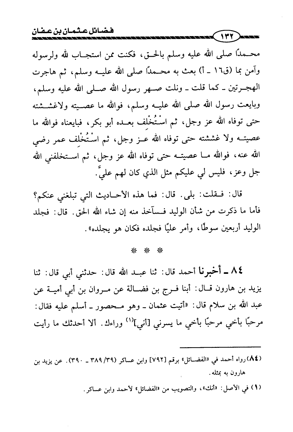 كتاب فضائل عثمان بن عفان لعبد الله بن أحمد