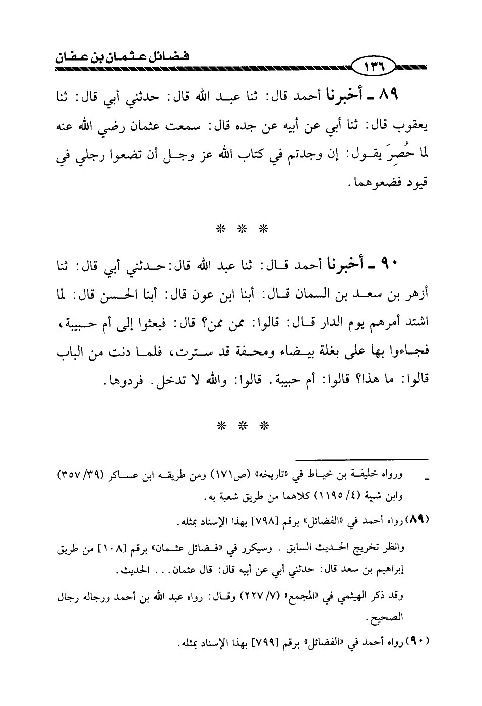 كتاب فضائل عثمان بن عفان لعبد الله بن أحمد