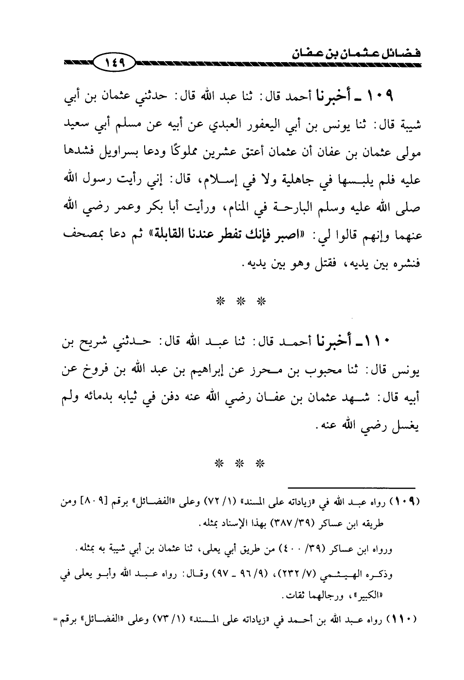 كتاب فضائل عثمان بن عفان لعبد الله بن أحمد