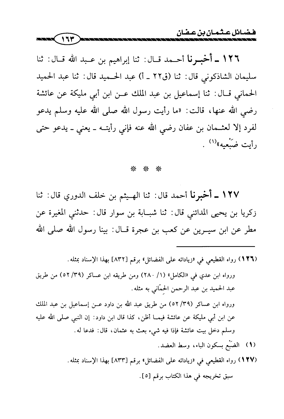 كتاب فضائل عثمان بن عفان لعبد الله بن أحمد