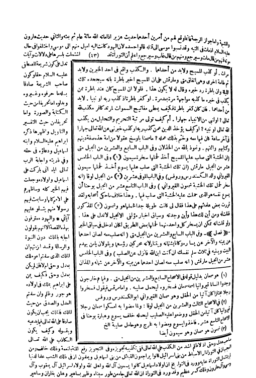 مَرَّات أَو كذب الْمَسِيح وَلَا بُد من أَحدهمَا وَالْكذب وَاقع فِي أحد الْخَبَرَيْنِ وَلَا بُد ثمَّ طامة أُخْرَى وَهِي اتِّفَاق مَتى ومارقش على أَن الْمَسِيح أخبر باطرة بِأَنَّهُ سيجحده تِلْكَ اللَّيْلَة وَأَن باطرة رد خَبره وَقَالَ لَهُ لَا يكون هَذَا فلولا أَن الْمَسِيح كَانَ عِنْد باطرة مِمَّن يكذب فِي خَبره مَا كذبه مُوَاجهَة مرّة بعد مرّة أَو كفر باطرة إِذْ كذب ربه أَو نَبيا لَا بُد من أَحدهمَا فَإِن كَانَ كفر باطرة فَكيف يُعْطي مَفَاتِيح السَّمَوَات لمرتد كَافِر مكذب لله تَعَالَى أَو لنَبِيّ من الْأَنْبِيَاء جهاراً أم كَيفَ تولي مرتبَة التَّحْرِيم والتحليل من يكذب الله تَعَالَى أَو نبيه أَو كَيفَ يُؤْخَذ الدّين عَمَّن كذب ربه أَو كذب خبر نَبِي عَن الله تَعَالَى جهاراً فِي آخر سَاعَة كَانَ فِيهَا مَعَه وَختم بذلك عمله مَا سمعنَا بأوسخ عقولاً من أمة هَذِه صفة دينهم وكتابهم وأئمتهم ونعوذ بِاللَّه من الخذلان وَفِي الْبَاب السَّابِع وَالْعِشْرين من إنجيل مَتى أَن الْخَشَبَة الَّتِي صلب عَلَيْهَا الْمَسِيح أَخذ لحملها سخرة سيمون وَفِي الْبَاب الْخَامِس عشر من إنجيل مارقش أَن تِلْكَ الْخَشَبَة الَّتِي صلب عَلَيْهِ يسوع أَخذ لحملها سيمون القيرواني وَالِد الكسندرس وروفس وَفِي الْبَاب الموفى عشْرين من إنجيل لوقا أَنه سخر لحمل تِلْكَ الْخَشَبَة شَمْعُون القيرواني وَفِي الْبَاب التَّاسِع عشر من إنجيل يوحنا أَن يسوع نَفسه هُوَ الَّذِي حملت عَلَيْهِ الْخَشَبَة الَّتِي صلب فِيهَا وَهَذَا خلاف مَا حكى أَصْحَابه وَلَقَد قررت بعض عُلَمَائهمْ على هَذَا فَقَالَ لي كَانَت طَوِيلَة جدا فحملها هُوَ وشمعون الْمَذْكُور فَقلت لَهُ وَمن أَيْن لَك هَذَا وَأَيْنَ وجدته وَسِيَاق أَخْبَار مُؤَلَّفِي الْإِنْجِيل لَا تدل على هَذَا وَلَو قلت أَنه مُمكن أَن يسخر كل وَاحِد مِنْهُمَا لحملها بعض الطَّرِيق لَكَانَ أَدخل فِي سِيَاق الْخَبَر