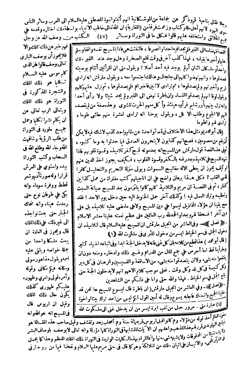 فصل وَفِي الْعَاشِر من إنجيل مارقش أَن الْمَسِيح أَن الْمَسِيح عَلَيْهِ السَّلَام قَالَ لتلاميذه أَن دُخُول الْجمل فِي سم الْخياط أيسر من دُخُول المثري فِي ملكوت الله