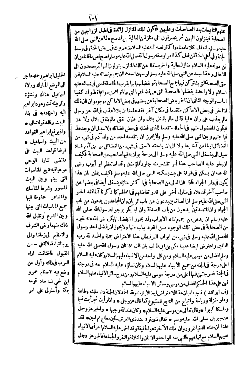عَنْهُم التابعيات بعد الصاحبات وعليهن فَتكون تِلْكَ الْمنَازل زَائِدَة فِي فضل أَزوَاجهنَّ من الصَّحَابَة فينزلون إلَيْهِنَّ ثمَّ يَنْصَرِفُونَ إِلَى منازلهن الْعَالِيَة بل قد صَحَّ هَذَا عَن النَّبِي صلى الله عَلَيْهِ وَسلم وَأَنه قَالَ كلَاما مَعْنَاهُ وَأكْثر نَصه أَنه عَلَيْهِ السَّلَام زعيم بَيت فِي ربض الْجنَّة فِي وسط الْجنَّة وَفِي أَعلَى الْجنَّة لمن فعل كَذَا أمرا وَصفه رَسُول الله صلى الله عَلَيْهِ وَسلم فصح نَص مَا قُلْنَا من أَن لمن دونه عَلَيْهِ السَّلَام منَازِل عالية وَآخر مسفلة عَن تِلْكَ الْمنَازل ينزلون إِلَيْهَا ثمَّ يصعدون إِلَى الأعالي وَهَذَا مبعد عَن النَّبِي صلى الله عَلَيْهِ وَسلم لوَجْهَيْنِ أَحدهمَا أَن جَمِيع نِسَائِهِ عَلَيْهِ السَّلَام لَهُنَّ حق الصُّحْبَة الَّتِي يشتركن فِيهَا جَمِيع الصَّحَابَة ويفضلنهم فِيهَا بِقرب الْخَاصَّة فَلَيْسَ فِي نِسَائِهِ عَلَيْهِ السَّلَام وَلَا وَاحِدَة يفضلها بالصحبة الَّتِي هِيَ فضيلتهم الَّتِي بهَا بانوا عَمَّن سواهُم فَقَط وَقد كفينا الْبَاب وَالْوَجْه الثَّانِي أَن تَأَخّر بعض الصَّحَابَة عَن بَعضهم فِي بعض الْأَمَاكِن مَوْجُودَة وَإِن كَانَ ذَلِك الْمُتَأَخر فِي بعض الْأَمَاكِن مُتَقَدما فِي مَكَان آخر فقد علمنَا أَن بِلَالًا عذب فِي الله عز وَجل مَا لم يعذب عَليّ وَأَن عليا قَاتل مَا لم يُقَاتل بِلَال وَأَن عُثْمَان أنْفق مَا لم ينْفق بِلَال وَلَا عَليّ فَيكون الْمَفْضُول مِنْهُم فِي الْجُمْلَة مُتَقَدما للَّذي فَضله فِي بعض فضائله وَلَا سَبِيل أَن يُوجد هَذَا فِيمَا بَينهم وَبَين النَّبِي صلى الله عَلَيْهِ وَسلم وَلَا يجوز أَن يتقدمه أحد من ولد آدم فِي شَيْء من الْفَضَائِل أَولهَا عَن آخرهَا وَلَا إِلَى أَن يلْحقهُ لَاحق فِي شَيْء من الْفَضَائِل من بني آدم فَلَا سَبِيل إِلَى ينسفل النَّبِي صلى الله عَلَيْهِ وَسلم إِلَى دَرَجَة يوازيها فِيهَا صَاحب من الصَّحَابَة فَكيف أَن يَعْلُو عَلَيْهِ الصاحب هَذَا أَمر تقشعر مِنْهُ جُلُود الْمُؤمنِينَ وَقد استعظم أَبُو أَيُّوب رَضِي الله عَنهُ أَن يسكن فِي غرفَة على بَيت يسكنهُ رَسُول الله صلى الله عَلَيْهِ وَسلم فَكيف يظنّ بِأَن هَذَا يكون فِي دَار الْجَزَاء فَإِذا كَانَ العالي من الصَّحَابَة فِي أَكثر مَنَازِله ينسفل أَيْضا فِي بَعْضهَا عَن صَاحب آخر قد علاهُ فِي منَازِل أخر على قدر تفاضلهم فِي أَعْمَالهم كَمَا ذكرنَا آنِفا فقد أخبر النَّبِي صلى الله عَلَيْهِ وَسلم أَن الصائمين يدعونَ من بَاب الريان وَأَن الْمُجَاهدين يدعونَ من بَاب الْجِهَاد وَأَن المتصدقين يدعونَ من بَاب الصَّدَقَة وَأَن أَبَا بكر يَرْجُو لَهُ رَسُول الله صلى الله عَلَيْهِ وَسلم أَن يَدعِي من جَمِيع تِلْكَ الْأَبْوَاب وَقد يجوز أَن يفضل أَبَا بكر رَضِي الله عَنهُ غَيره من الصَّحَابَة فِي بعض تِلْكَ الْوُجُوه مِمَّا انْفَرد بِبَاب مِنْهَا وَلَا يجوز أَن يفضل أحد رَسُول الله صلى الله عَلَيْهِ وَسلم فِي شَيْء من أَبْوَاب الْبر فَبَطل هَذَا الِاعْتِرَاض جملَة وَالْحَمْد لله رب الْعَالمين وَاعْترض أَيْضا علينا مكي بن أبي طَالب بِأَن قَالَ إِذا كَانَ رَسُول الله صلى الله عَلَيْهِ وَسلم أفضل من مُوسَى عَلَيْهِ السَّلَام وَمن كل وَاحِد من الْأَنْبِيَاء عَلَيْهِم السَّلَام وَكَانَ عَلَيْهِ السَّلَام أَعلَى دَرَجَة فِي الْجنَّة من جَمِيع الْأَنْبِيَاء عَلَيْهِم السَّلَام وَكَانَ نساؤه عَلَيْهِ السَّلَام مَعَه فِي دَرَجَته فِي الْجنَّة فدرجتهن فِيهَا أَعلَى من دَرَجَة مُوسَى عَلَيْهِ السَّلَام وَمن درج سَائِر الْأَنْبِيَاء عَلَيْهِم السَّلَام فهن على هَذَا الحكم أفضل من مُوسَى وَسَائِر الْأَنْبِيَاء عَلَيْهِم السَّلَام
