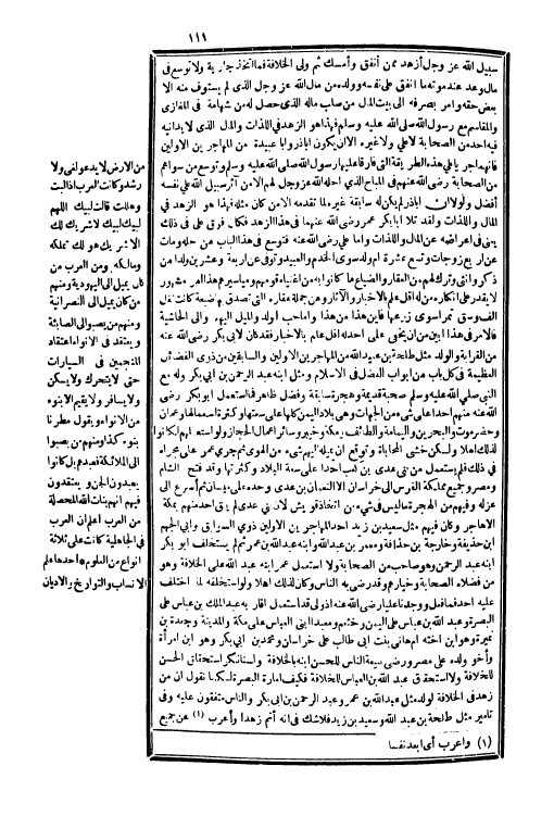 سَبِيل الله عز وَجل أزهد مِمَّن أنفقت وَأمْسك ثمَّ ولي الْخلَافَة فَمَا اتخذ جَارِيَة وَلَا توسع فِي مَال وعد عِنْد مَوته وَمَا أنْفق على نَفسه وَولده من مَال الله عز وَجل الَّذِي لم يسْتَوْف مِنْهُ إِلَّا بعض حَقه وَأمر بصرفه إِلَى بَيت المَال من صلب مَاله الَّذِي حصله من شهامة الْمَغَازِي والمقاسم مَعَ رَسُول الله صلى الله عَلَيْهِ وَسلم فَهَذَا هُوَ الزّهْد فِي اللَّذَّات وَالْمَال الَّذِي لَا يدانيه فِيهِ أحد من الصَّحَابَة لَا عَليّ وَلَا غَيره إِلَّا أَن يكون أَبَا ذَر وَأَبا عُبَيْدَة من الْمُهَاجِرين الْأَوَّلين فَإِنَّهُمَا جَريا على هَذِه الطَّرِيقَة الَّتِي فارقا عَلَيْهَا رَسُول الله صلى الله عَلَيْهِ وَسلم وَتوسع من سواهُم من الصَّحَابَة رَضِي الله عَنْهُم فِي الْمُبَاح الَّذِي أحله الله عز وَجل لَهُم إِلَّا من آثر سَبِيل الله على نَفسه أفضل وَلَوْلَا أَن أَبَا ذَر لم يكن لَهُ سَابِقَة غَيره لما تقدمه إِلَّا من كَانَ مثله فَهَذَا هُوَ الزّهْد فِي المَال وَاللَّذَّات وَلَقَد تَلا أَبَا بكر عمر رَضِي الله عَنْهُمَا فِي هَذَا الزّهْد فَكَانَ فَوق عَليّ فِي ذَلِك يَعْنِي فِي إعراضه عَن المَال وَاللَّذَّات وَأما عَليّ رَضِي الله عَنهُ فتوسع فِي هَذَا الْبَاب من حلّه وَمَات عَن أَربع زَوْجَات وتسع عشرَة أم ولد سوى الخدم وَالْعَبِيد وَتُوفِّي عَن أَرْبَعَة وَعشْرين ولدا من ذكر وَأُنْثَى وَترك لَهُم من الْعقار والضياع هما مَا كَانُوا بِهِ من أَغْنِيَاء قَومهمْ ومياسيرهم هَذَا أَمر مَشْهُور لَا يقدر على إِنْكَاره من لَهُ أقل علم بالأخبار والْآثَار وَمن جملَة عقاره الَّتِي تصدق بهَا ضبعة كَانَت تغل ألف وسق تمر أسوى زَرعهَا فَأَيْنَ هَذَا من هَذَا وَأما حب الْوَلَد والميل إِلَيْهِم وَإِلَى الْحَاشِيَة فَالْأَمْر فِي هَذَا أبين من أَن يخفى على أحد لَهُ أقل علم بالأخبار فقد كَانَ لأبي بكر رَضِي الله عَنهُ من الْقَرَابَة وَالْولد مثل طَلْحَة بن عبيد الله من الْمُهَاجِرين الْأَوَّلين والسابقين من ذَوي الْفَضَائِل الْعَظِيمَة فِي كل بَاب من أَبْوَاب الْفضل فِي الْإِسْلَام وَمثل ابْنه عبد الرَّحْمَن بن أبي بكر وَله مَعَ النَّبِي صلى الله عَلَيْهِ وَسلم صُحْبَة قديمَة وهجرة سَابِقَة وَفضل ظَاهر فَمَا اسْتعْمل أَبُو بكر رَضِي الله مِنْهُم أحدا على شَيْء من الْجِهَات وَهِي بِلَاد الْيمن كلهَا على سعتها وَكَثْرَة اسْتِعْمَالهَا وعمان وحضرموت والبحرين واليمامة والطائف وَمَكَّة وخيبر وَسَائِر أَعمال الْحجاز وَلَو استعملهم لكانوا لذَلِك أَهلا وَلَكِن خشيء الْمُحَابَاة وتوقع أَن يميله إِلَيْهِم شَيْء من الْهوى ثمَّ جرى عمر على مجْرَاه فِي ذَلِك فَلم يسْتَعْمل من بني عدي بن كَعْب أحدا على سَعَة الْبِلَاد وَكَثْرَتهَا وَقد فتح الشَّام ومصر وَجَمِيع مملكة الْفرس إِلَى خُرَاسَان إِلَّا النُّعْمَان بن عدي وَحده على ميسَان ثمَّ أسْرع إِلَى عَزله وَفِيهِمْ من الْهِجْرَة مَا لَيْسَ فِي شَيْء من اتِّخَاذ قُرَيْش لِأَن بني عدي لم يبْق أحد مِنْهُم بِمَكَّة إِلَّا هَاجر وَكَانَ فيهم مثل سعيد بن زيد أحد الْمُهَاجِرين الْأَوَّلين ذَوي السوابق وَأبي الجهم ابْن حُذَيْفَة وخارجة بن حذافة وَمعمر بن عبد الله وَابْنه عبد الله بن عمر ثمَّ لم يسْتَخْلف أَبُو بكر ابْنه عبد الرَّحْمَن وَهُوَ صَاحب من الصَّحَابَة وَلَا اسْتعْمل عمر ابْنه عبد الله على الْخلَافَة وَهُوَ من فضلاء الصَّحَابَة وخيارهم وَقد رَضِي بِهِ النَّاس وَكَانَ لذَلِك أَهلا وَلَو اسْتَخْلَفَهُ لما اخْتلف عَلَيْهِ أحد فَمَا فعل وَوجدنَا عليا رَضِي الله عَنهُ إِذا ولي قد اسْتعْمل أَقَاربه عبد الْملك بن عَبَّاس على الْبَصْرَة وَعبد الله بن عَبَّاس على الْيمن وخثعم ومعبدا ابْني الْعَبَّاس على مَكَّة وَالْمَدينَة وجعدة بن نميرة وَهُوَ ابْن أُخْته أم هَانِيء بنت أبي طَالب على خُ