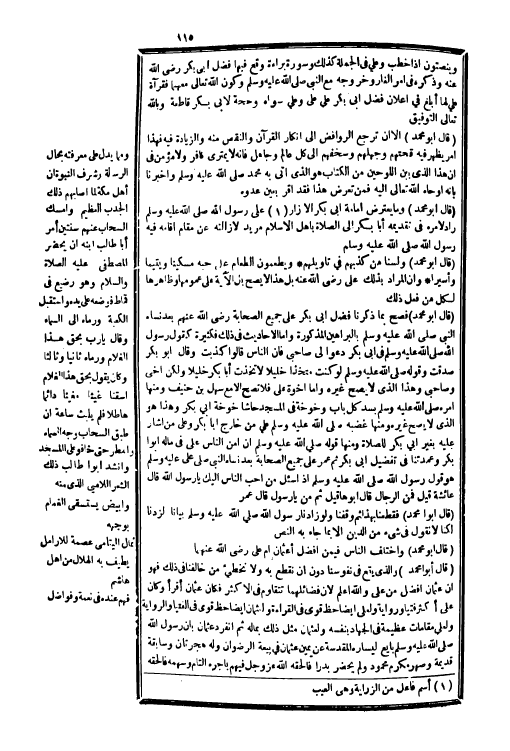 (قَالَ أَبُو مُحَمَّد) وَالَّذِي يَقع فِي نفوسنا دون أَن نقطع بِهِ وَلَا نخطيء من خَالَفنَا فِي ذَلِك فَهُوَ أَن عُثْمَان أفضل من عَليّ وَالله أعلم لِأَن فضائلهما تتقاوم فِي الْأَكْثَر فَكَانَ عُثْمَان أَقرَأ وَكَانَ عَليّ أَكثر فتيا وَرِوَايَة ولعلي أَيْضا حَظّ قوي فِي الْقِرَاءَة ولعثمان أَيْضا حَظّ قوي فِي الْفتيا وَالرِّوَايَة ولعلي مقامات عَظِيمَة فِي الْجِهَاد بِنَفسِهِ ولعثمان مثل ذَلِك بِمَالِه ثمَّ انْفَرد عُثْمَان بِأَن رَسُول الله صلى الله عَلَيْهِ وَسلم بَايع ليساره المقدسة عَن يَمِين عُثْمَان فِي بيعَة الرضْوَان وَله هجرتان وسابقة قديمَة وصهر مكرم مَحْمُود وَلم يحضر بَدْرًا فألحقه الله عز وَجل فِيهِ بأجره التَّام وسهمه فألحقه