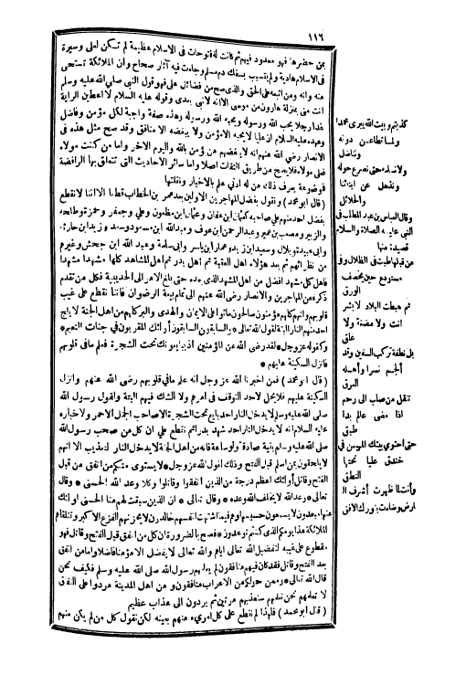 بِمن حضرها فَهُوَ مَعْدُود فيهم ثمَّ كَانَت لَهُ فتوحات فِي الْإِسْلَام عَظِيمَة لم تكن لعَلي وسيرة فِي الْإِسْلَام هادية وَلم يتسبب بسفك دم مُسلم وَجَاءَت فِيهِ آثَار صِحَاح وَأَن الْمَلَائِكَة تَسْتَحي مِنْهُ وَأَنه وَمن أتبعه على الْحق وَالَّذِي صَحَّ من فَضَائِل عَليّ فَهُوَ قَول النَّبِي صلى الله عَلَيْهِ وَسلم أَنْت مني بِمَنْزِلَة هَارُون من مُوسَى إِلَّا أَنه لَا نَبِي بعدِي وَقَوله عَلَيْهِ السَّلَام لَأُعْطيَن الرَّايَة غَدا رجلا يحب الله وَرَسُوله وَيُحِبهُ الله وَرَسُوله وَهَذِه صفة وَاجِبَة لكل مُؤمن وفاضل وَعَهده عَليّ السَّلَام أَن عليا لَا يُحِبهُ إِلَّا مُؤمن وَلَا يبغضه إِلَّا مُنَافِق وَقد صَحَّ مثل هَذِه فِي الْأَنْصَار رَضِي الله عَنْهُم أَنه لَا يبغضهم من مُؤمن بِاللَّه وباليوم الآخر وَأما من كنت مَوْلَاهُ فعلي مَوْلَاهُ فَلَا يَصح من طَرِيق الثِّقَات أصلا وَأما سَائِر الْأَحَادِيث الَّتِي تتَعَلَّق بهَا الرافضة فموضوعة يعرف ذَلِك من لَهُ أدنى علم بالأخبار ونقلتها