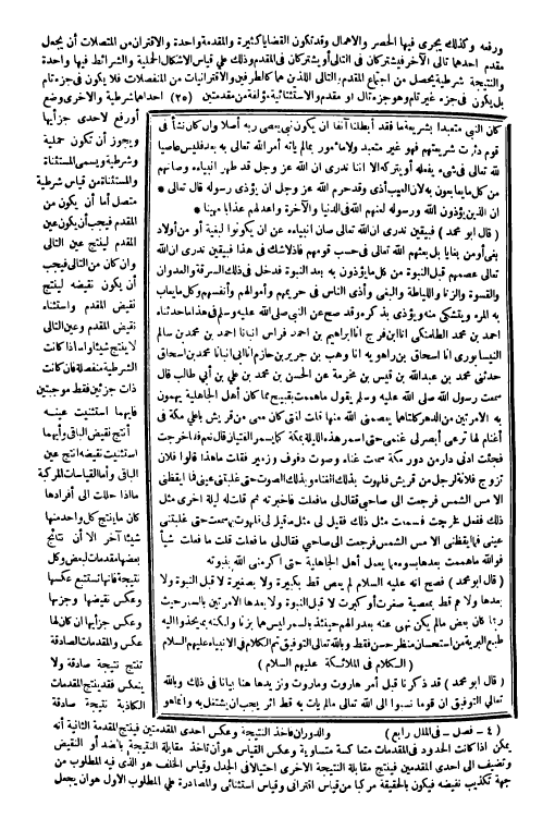 (قَالَ أَبُو مُحَمَّد) فبيقين نَدْرِي أَن الله تَعَالَى صان أنبياءه عَن أَن يَكُونُوا لبغية أَو من أَوْلَاد بغى أَو من بَغَايَا بل بَعثهمْ الله تَعَالَى فِي حسب قَومهمْ فَإِذا لَا شكّ فِي هَذَا فبيقين نَدْرِي أَن اله تَعَالَى عصمهم قبل النُّبُوَّة من كل مَا يُؤْذونَ بِهِ بعد النُّبُوَّة فَدخل فِي ذَلِك السّرقَة والعدوان وَالْقَسْوَة وَالزِّنَا واللياطة وَالْبَغي وأذى النَّاس فِي حريمهم وَأَمْوَالهمْ وأنفسهم وكل مَا يعاب بِهِ الْمَرْء ويتشكى مِنْهُ ويؤذى بِذكرِهِ وَقد صَحَّ عَن النَّبِي صلى الله عَلَيْهِ وَسلم فِي هَذَا مَا حدّثنَاهُ أَحْمد بن مُحَمَّد الطلمنكي أَنا ابْن فرج أَنا إِبْرَاهِيم بن أَحْمد فراس أَنبأَنَا أَحْمد بن مُحَمَّد بن سَالم النَّيْسَابُورِي أَنا إِسْحَاق بن رَاهَوَيْه انا وهب بن جرير بن حَازِم انا أبي أَنبأَنَا محمدبن إِسْحَاق حَدثنِي مُحَمَّد بن عبد الله بن قيس بن مخرمَة عَن الْحسن بن مُحَمَّد بن عَليّ بن أبي طَالب قَالَ سَمِعت رَسُول الله صلى الله عَلَيْهِ وَسلم يَقُول مَا هَمَمْت بقبيح مِمَّا كَانَ أهل الْجَاهِلِيَّة يهمون بِهِ إِلَّا مرَّتَيْنِ من الدَّهْر كلتاهما يعصمني الله مِنْهَا قلت لفتى كَانَ معي من قُرَيْش بِأَعْلَى مَكَّة فِي أَغْنَام لَهَا ترعى أبْصر لي غنمي حَتَّى أسمر هَذِه اللَّيْلَة بِمَكَّة كَمَا يسمر الفتيان قَالَ نعم فَلَمَّا خرجت فَجئْت أدني دَار من دور مَكَّة سَمِعت غناء وَصَوت دفوف وزمير فَقلت مَا هَذَا قَالُوا فلَان تزوج فُلَانَة لرجل من قُرَيْش فلهوث بذلك الْغناء وَبِذَلِك الصَّوْت حَتَّى غلبتني عَيْني فَمَا أيقظني ألامس الشَّمْس فَرَجَعت إِلَى صاحبى فَقَالَ لي مَا فعلت فَأَخْبَرته ثمَّ قلت لَهُ لَيْلَة أُخْرَى مثل ذَلِك فَفعل فَخرجت فَسمِعت مثل ذَلِك فَقيل لي مثل مَا قيل لي فلهوت بِمَا سَمِعت حَتَّى غلبتني عَيْني فَمَا أيقظني إِلَّا مس الشَّمْس فَرَجَعت إِلَى صَاحِبي فَقَالَ لي مَا فعلت قلت مَا فعلت شَيْئا فوَاللَّه مَا هَمَمْت بعْدهَا بِسوء مِمَّا يعْمل أهل الْجَاهِلِيَّة حَتَّى أكرمني الله بنبوته