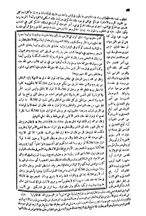 (قَالَ أَبُو مُحَمَّد) وَكَذَلِكَ قَوْله تَعَالَى {وَلَو جَعَلْنَاهُ ملكا لجعلناه رجلا} فَأبْطل عز وَجل أَنه يُمكن ظُهُور ملك إِلَى النَّاس وَقَالَ تَعَالَى {وَلَو أنزلنَا ملكا لقضي الْأَمر ثمَّ لَا ينظرُونَ} فكذب الله عز وَجل كل من قَالَ أَن ملكا نزل قطّ من السَّمَاء ظَاهرا إِلَّا إِلَى الْأَنْبِيَاء بِالْحَقِّ من عِنْد الله عز وَجل فَقَط وَقَالَ عز وَجل {وَقَالَ الَّذين لَا يرجون لقاءنا لَوْلَا أنزل علينا الْمَلَائِكَة أَو نرى رَبنَا لقد استكبروا فِي أنفسهم وعتوا عتواً كَبِيرا يَوْم يرَوْنَ الْمَلَائِكَة لَا بشرى يَوْمئِذٍ للمجرمين} الْآيَة فَرفع الله تَعَالَى الأشكال بِهَذَا النَّص فِي هَذِه الْمَسْأَلَة وَقرن عز وَجل نزُول الْمَلَائِكَة فِي الدُّنْيَا بِرُؤْيَتِهِ عز وَجل فِيهَا فصح ضَرُورَة أَن نزولهم فِي الدُّنْيَا إِلَى غير الْأَنْبِيَاء مُمْتَنع الْبَتَّةَ لَا يجوز وَأَن من قَالَ ذَلِك فقد قَالَ حجرا مَحْجُورا أَي مُمْتَنعا وَظهر بهَا كذب من ادّعى أَن ملكَيْنِ نزلا إِلَى النَّاس فعلماهم السحر وَقد استعظم الله عز وَجل ذَلِك من رَغْبَة من رغب نزُول الْمَلَائِكَة إِلَى النَّاس وسمى هَذَا الْفِعْل استكباراً وعتواً وَأخْبر عز وَجل أننا لَا نرى الْمَلَائِكَة أبدا إِلَى يَوْم الْقِيَامَة فَقَط وَأَنه لَا بشرى يَوْمئِذٍ للمجرمين فَإذْ لَا شكّ فِي هَذَا كُله فقد علمنَا ضَرُورَة أَنه لَا يَخْلُو من أحد وَجْهَيْن لَا ثَالِث لَهما كَمَا قدمنَا قبل إِمَّا أَن هاروت وماروت لم يَكُونَا ملكَيْنِ وَأَن مَا فِي قَوْله وَمَا أنزل على الْملكَيْنِ نفى لِأَن