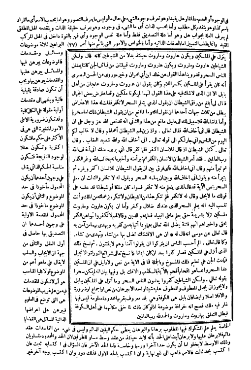 ينزل على الْملكَيْنِ وَيكون هاروت وماروت حيئذ بَدَلا من الشَّيَاطِين كَأَنَّهُ قَالَ وَلَكِن الشَّيَاطِين هاروت وماروت وَيكون هاروت وماروت قبيلتان من قبائل الْجِنّ كَانَتَا يعلمَانِ النَّاس السحر وَقد روينَا هَذَا القَوْل عَن خَالِد ابْن أبي عمرَان وَغَيره وَرُوِيَ عَن الْحسن الْبَصْرِيّ أَنه كَانَ يقْرَأ على الْملكَيْنِ بِكَسْر اللَّام وَكَانَ يَقُول أَن هاروت وماروت علجان من أهل بابل إِلَّا أَن الَّذِي لَا شكّ فِيهِ على هَذَا القَوْل أَنَّهُمَا لم يَكُونَا ملكَيْنِ وَقد اعْترض بعض الْجُهَّال فَقَالَ لي أبلغ من رفق الشَّيْطَان أَن يَقُول للَّذي يتَعَلَّم السحر لَا تكفر فَقلت لَهُ هَذَا الِاعْتِرَاض يبطل من ثَلَاث جِهَات أَحدهمَا أَن نقُول لَك وَمَا الْمَانِع من أَن يَقُول الشَّيْطَان ذَلِك أما سخرياً وَأما لما شَاءَ الله فَلَا سَبِيل لَك إِلَى دَلِيل مَانع من هَذَا وَالثَّانِي أَنه قد نَص الله عز وَجل على أَن الشَّيْطَان قَالَ أَنِّي أَخَاف الله فَقَالَ تَعَالَى {وَإِذ زين لَهُم الشَّيْطَان أَعْمَالهم وَقَالَ لَا غَالب لكم الْيَوْم من النَّاس وَإِنِّي جَار لكم} إِلَى قَوْله تَعَالَى {أَنِّي أَخَاف الله وَالله شَدِيد الْعقَاب} وَقَالَ تَعَالَى {كَمثل الشَّيْطَان إِذْ قَالَ للْإنْسَان اكفر فَلَمَّا كفر قَالَ أَنِّي بَرِيء مِنْك إِنِّي أَخَاف الله رب الْعَالمين} فقد أَمر الشَّيْطَان الْإِنْسَان بالْكفْر ثمَّ تَبرأ مِنْهُ وَأخْبرهُ أَنه يخلف الله وغر الْكفَّار ثمَّ تَبرأ مِنْهُم وَقَالَ أَنِّي أَخَاف الله بَين أَن يَقُول الشَّيْطَان للْإنْسَان اكفر ويغره ثمَّ يتبرأ مِنْهُ وَيَقُول أَنِّي أَخَاف اله وَبَين أَن يُعلمهُ السحر وَيَقُول لَهُ لَا تكفر وَالثَّالِث أَن معلم السحر بِنَصّ الْآيَة قد قَالَ للَّذي يتَعَلَّم مِنْهُ لَا تكفر فَسَوَاء كَانَ ملكا أَو شَيْطَانا قد علمه على قَوْلك مَا لَا يحل وَقَالَ لَهُ لَا تكفر فَلم تنكر هَذَا من الشَّيْطَان وَلَا تنكره بزعمك من الْملك وَأَنت تنْسب إِلَيْهِ أَن يعلم السحر الَّذِي عنْدك ضلال وَكفر وَإِمَّا أَن يكون هاروت وماروت ملكَيْنِ نزلا بشريعة حق بِعلم مَا على أَنْبيَاء فعلماهم الدّين وَقَالا لَهُم لَا تكفرُوا نهيا عَن الْكفْر بِحَق وأخبراهم أَنهم فتْنَة يضل الله تَعَالَى بهما وَبِمَا أَتَيَا بِهِ من كفر بِهِ وَيهْدِي بهما من آمن بِهِ قَالَ تَعَالَى عَن مُوسَى أَنه قَالَ لَهُ {إِن هِيَ إِلَّا فتنتك تضل بهَا من تشَاء وتهدي من تشَاء} وكما قَالَ تَعَالَى {الم أَحسب النَّاس أَن يتْركُوا أَن يَقُولُوا آمنا وهم لَا يفتنون} ثمَّ نسخ ذَلِك الَّذِي أنزل على الْملكَيْنِ فَصَارَ كفرا بعد أَن كَانَ إِيمَانًا كَمَا نسخ تَعَالَى شرائع التَّوْرَاة والانجيل فتمادت الْجِنّ على تعلم ذَلِك الْمَنْسُوخ وَبِالْجُمْلَةِ فَمَا فِي الْآيَة من نَص وَلَا دَلِيل على أَن الْملكَيْنِ علما السحر وَإِنَّمَا هُوَ إقحام أقحم بِالْآيَةِ بِالْكَذِبِ والافك بل وفيهَا بَيَان أَنه لم يكن سحرًا بقوله تَعَالَى {وَلَكِن الشَّيَاطِين كفرُوا يعلمُونَ النَّاس السحر وَمَا أنزل على الْملكَيْنِ بِبَابِل} وَلَا يجوز أَن يَجْعَل الْمَعْطُوف والمعطوف عَلَيْهِ شَيْئا وَاحِدًا إِلَّا ببرهان من نَص أَو إِجْمَاع أَو ضَرُورَة وَإِلَّا فَلَا أصلا وَأَيْضًا فَإِن بابل هِيَ الْكُوفَة وَهِي بلد مَعْرُوف بقربها محدودة مَعْلُومَة لَيْسَ فِيهَا غَار فِيهِ ملك فصح أَنه خرافة مَوْضُوعَة إِذْ لَو كَانَ لَك لما خفى مكانهما على أهل الْكُوفَة فَبَطل التَّعَلُّق بهاروت وماروت وَالْحَمْد لله رب الْعَالمين