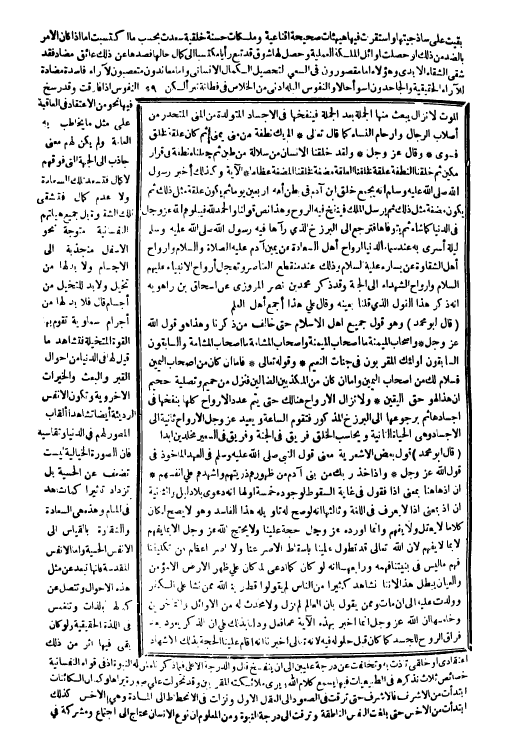 (قَالَ أَبُو مُحَمَّد) وَهُوَ قَول جَمِيع أهل الْإِسْلَام حَتَّى خَالف من ذكرنَا وَهَذَا هُوَ قَول الله عز وَجل {فأصحاب الميمنة مَا أَصْحَاب الميمنة وَأَصْحَاب المشأمة مَا أَصْحَاب المشأمة وَالسَّابِقُونَ السَّابِقُونَ أُولَئِكَ المقربون فِي جنَّات النَّعيم} وَقَوله تَعَالَى {وَأما إِن كَانَ من أَصْحَاب الْيَمين فسلام لَك من أَصْحَاب الْيَمين وَأما إِن كَانَ من المكذبين الضَّالّين فَنزل من حميم وتصلية جحيم إِن هَذَا لَهو حق الْيَقِين} وَلَا تزَال الْأَرْوَاح هُنَالك حَتَّى يتم عدد الْأَرْوَاح كلهَا بنفخها فِي أجسادها ثمَّ برجوعها إِلَى البرزخ الْمَذْكُور فتقوم السَّاعَة وَيُعِيد عز وَجل الْأَرْوَاح ثَانِيَة إِلَى الأجساد وَهِي الْحَيَاة الثَّانِيَة وَيُحَاسب الْخلق فريق فِي الْجنَّة وفريق فِي السعير مخلدين أبدا