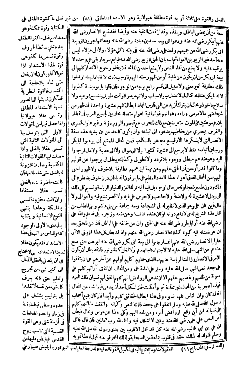 سَعَة من أَن يمْضِي الْبَاطِل وينفذه وَقد ارْتَفَعت التقية عَنهُ وَأَيْضًا فقد نَازع الْأَنْصَار رَضِي الله عَنْهُم أَبَا بكر رَضِي الله عَنهُ ودعوا إِلَى بيعَة سعد بن عبَادَة رَضِي الله عَنْهُم ودعا الْمُهَاجِرُونَ إِلَى بيعَة أبي بكر رَضِي الله عَن جَمِيعهم وَقعد عَليّ رَضِي الله عَنهُ فِي بَيته لَا إِلَى هَؤُلَاءِ وَلَا إِلَى هَؤُلَاءِ لَيْسَ مَعَه أحد غير الزبير بن الْعَوام ثمَّ استبان الْحق للزبير رَضِي الله عَنهُ فَبَايع سَرِيعا وَبَقِي عَليّ وَحده لَا يرقب عَلَيْهِ وَلَا يمْنَع من لِقَاء النَّاس وَلَا يمْنَع من لِقَائِه فَلَا يَخْلُو رُجُوع الْأَنْصَار كلهم إِلَى بيعَة أبي بكر من أَن يكون عَن غَلَبَة أَو عَن ظُهُور حَقه إِلَيْهِم فَأوجب ذَلِك الانقياد لبيعته أَو فعلوا ذَلِك مطارفة لغير معنى وَلَا سَبِيل إِلَى قسم رَابِع بِوَجْه من الْوُجُوه فَإِن قَالُوا بَايعُوهُ بِغَلَبَة كذبُوا لِأَنَّهُ لم يكن هُنَالك قتال لَا تضارب وَلَا سباب وَلَا تهديد وَلَا وَقت طَوِيل يَنْفَسِخ للوعيد وَلَا سلَاح مَأْخُوذ ومحال أَن يتْرك أَزِيد من ألفي فَارس أنجاد أبطال كلهم عشيرة وَاحِدَة قد ظهر من شجاعتهم مَا لَا مرمى وَرَاءه وَهُوَ أَنهم بقو ثَمَانِيَة أَعْوَام مُتَّصِلَة محاربين لجَمِيع الْعَرَب فِي أقطار بِلَادهمْ موطنين على الْمَوْت متعرضين مَعَ ذَلِك للحرب مَعَ قَيْصر وَالروم بمؤنة وَغَيرهَا ولكسرى وَالْفرس ببصرى من يخاطبهم يَدعُوهُ إِلَى اتِّبَاعه وَأَن يكون كَأحد من بَين يَدَيْهِ هَذِه صفة الْأَنْصَار الَّتِي لَا ينكرها إِلَّا رقيع مجاهر بِالْكَذِبِ فَمن الْمحَال الْمُمْتَنع أَن يرهبوا أَبَا بكر وَرجلَيْنِ أَتَيَا مَعَه فَقَط لَا يرجع إِلَى عشيرة كَثِيرَة وَلَا إِلَى موَالٍ وَلَا إِلَى عصبَة وَلَا مَال فَرَجَعُوا إِلَيْهِ وَهُوَ عِنْدهم مُبْطل وَبَايَعُوهُ بِلَا تردد وَلَا تَطْوِيل وَكَذَلِكَ يبطل أَن يرجِعوا عَن قَوْلهم وَمَا كَانُوا قد رَأَوْهُ من أَن الْحق حَقهم وَعَن بيعَة ابْن عمهم مطارفة بِلَا خوف وَلَا ظُهُور الْحق إِلَيْهِم فَمن الْمحَال اتِّفَاق أهواء هَذَا الْعدَد الْعَظِيم على مَا يعْرفُونَ أَنه بَاطِل دون خوف يضطرهم إِلَى ذَلِك وَدون طمع يتعجلونه من مَال أَو جاه بل فِيمَا فِيهِ ترك الْعِزّ وَالدُّنْيَا والرياسة وَتَسْلِيم كل ذَلِك إِلَى رجل لَا عشيرة لَهُ وَلَا مَنْعَة وَلَا حَاجِب وَلَا حرس على بَابه وَلَا قصر مُمْتَنع فِيهِ وَلَا موَالِي وَلَا مَال فَأَيْنَ كَانَ عَليّ وَهُوَ الَّذِي لَا نَظِير لَهُ فِي الشجَاعَة وَمَعَهُ جمَاعَة من بني هَاشم وَبني الْمطلب من قتل هَذَا الشَّيْخ الَّذِي لَا دَافع دونه لَو كَانَ عِنْده ظَالِما وَعَن مَنعه وزجره بل قد علم وَالله عَليّ رَضِي الله عَنهُ أَن أَبَا بكر رَضِي الله عَنهُ على الْحق وَإِن من خَالفه على الْبَاطِل فَإذْ عَن للحق بعد أَن عرضت لَهُ فِيهِ كبوة كَذَلِك الْأَنْصَار رَضِي الله عَنْهُم وَإِذ قد بَطل كل هَذَا فَلم يبْق إِلَّا أَن عليا وَالْأَنْصَار رَضِي الله عَنْهُم إِنَّمَا رجعُوا إِلَى بيعَة أبي بكر رَضِي الله عَنْهُم لبرهان حق صَحَّ عِنْدهم عَن النَّبِي صلى الله عَلَيْهِ وَسلم لَا لاجتهاد كاجتهادهم وَلَا لظن كظنونهم فَإذْ قد بَطل أَن يكون الْأَمر فِي الْأَنْصَار وزالت الرياسة عَنْهُم فَمَا الَّذِي حملهمْ كلهم أَوَّلهمْ عَن آخِرهم على أَن يتفقوا على جحد نَص النَّبِي صلى الله عَلَيْهِ وَسلم على أماة عَليّ وَمن الْمحَال أَن تتفق آرائهم كلهم على مَعُونَة من ظلمهم وغصبهم حَقهم إِلَّا أَن تَدعِي الروافض أَنهم كلهم اتّفق لَهُم نيسان فَهَذِهِ أعجوبة من الْمحَال غير مُمكنَة ثمَّ لَو أمكنت لجَاز لكل أحد أَن يَدعِي فِيمَا شَاءَ من الْمحَال إِنَّه قد كَانَ وَإِن النَّاس كفهم نسوه وَفِي هَذَا ابطال الْحَقَائِق كلهم وَأَيْضًا فَإِن كَانَ جَمِيع أَصْحَاب رَسُول 