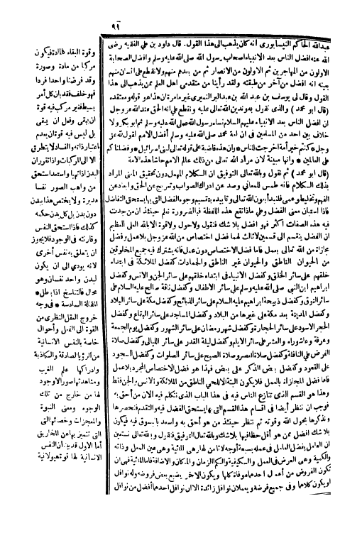 عبد الله الْحَاكِم النَّيْسَابُورِي أَنه كَانَ يذهب إِلَى هَذَا القَوْل قَالَ دَاوُد بن عَليّ الْفَقِيه رَضِي الله عَنهُ أفضل النَّاس بعد الْأَنْبِيَاء أَصْحَاب رَسُول الله صلى الله عَلَيْهِ وَسلم وَأفضل الصَّحَابَة الْأَولونَ من الْمُهَاجِرين ثمَّ الْأَولونَ من الْأَنْصَار ثمَّ من بعدهمْ مِنْهُم وَلَا نقطع على إِنْسَان مِنْهُم بِعَيْنِه أَنه أفضل من آخر من طبقته وَلَقَد رَأينَا من مُتَقَدِّمي أهل الْعلم مِمَّن يذهب إِلَى هَذَا القَوْل وَقَالَ لي يُوسُف بن عبد الله بن عبد الْبر النميري غير مَا مرّة أَن هَذَا هُوَ قَوْله ومعتقده