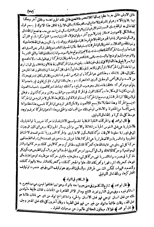 قَالَ أَبُو مُحَمَّد تنَازع المتكلمون فِي معنى عبروا عَنهُ بالتواد وَهُوَ أَنهم اخْتلفُوا فِيمَن رمى سَهْما فجرح بِهِ إنْسَانا أَو غَيره وَفِي حرق النَّار وتبريد والثلج وَسَائِر الْآثَار الظَّاهِرَة من الجمادات فَقَالَت طَائِفَة مَا تولد من ذَلِك عَن فعل إِنْسَان أَو حَيّ فَهُوَ فعل الْإِنْسَان والحي وَاخْتلفُوا فِيمَا تولد من غير حَيّ فَقَالَت طَائِفَة هُوَ فعل الله وَقَالَت طَائِفَة مَا تولد من غير حَيّ فَهُوَ فعل الطبيعة وَقَالَ آخَرُونَ كل ذَلِك فعل الله عز وَجل