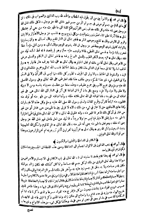 قَالَ أَبُو مُحَمَّد وَهَذَا كَلَام فَاسد لما سنبينه إِن شَاءَ الله تَعَالَى فِي بَاب الْكَلَام فِي الْأَجْسَام والأعراض من ديواننا هَذَا وَبِاللَّهِ تَعَالَى التَّوْفِيق من ذَلِك أَن كل جسم فَلهُ مساحة وَإِذا كَانَ كَذَلِك فَلهُ مَكَان زَائِد وَإِذ لَهُ مَكَان بِقدر مساحته وَلَا بُد فَإِن كل جسم زيد عَلَيْهِ جسم آخر فَإِن ذَلِك الْجِسْم الزَّائِد يحْتَاج إِلَى مَكَان زَائِد من أجل مساحته الزَّائِدَة هَذَا أَمر يعلم بِالْمُشَاهَدَةِ فَإِن اخْتَلَط الْأَمر على من لم يتمرن فِي معرفَة حُدُود الْكَلَام من أجل مَا يرى فِي الْأَجْسَام المتخلخلة من تخَلّل الْأَجْسَام المايعة لَهَا فَإِنَّمَا هَذَا الْآن فِي خلال أَجزَاء تِلْكَ الْأَجْسَام المتخلخلة خروقاً صغَارًا مَمْلُوءَة هَوَاء فَإِذا صب عَلَيْهَا المَاء أَو مَائِع مَا مَلأ تِلْكَ الخروق وَخرج عَنْهَا الْهَوَاء الَّذِي كَانَ فِيهِ وَهَذَا ظَاهر للعين محسوس خُرُوج الْهَوَاء عَنْهَا بنفاخات وَصَوت من كل مَا يخرج عَنهُ الْهَوَاء مسرعاً وَالَّذِي ذكرنَا فَإِنَّهُ إِذا تمّ خُرُوج الْهَوَاء عَنهُ وَزيد فِي عدد الْمَائِع رَبًّا وَاحْتَاجَ إِلَى مَكَان زَائِد وَأما الَّذِي ذكرنَا قبل فَإِنَّهُ فِي الْأَجْسَام المكتنزة كَمَاء صب على مَاء أَو دهن على دهن أَو دهن على مَاء وَهَكَذَا فِي كل شَيْء من هَذِه الْأَنْوَاع وَغَيرهَا