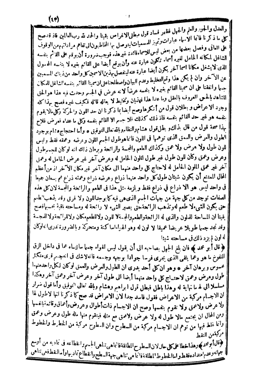قَالَ أَبُو مُحَمَّد وَهَذَا خطأ على كل حَال لِأَن السطوح الْمُطلقَة فَإِنَّمَا هِيَ تناهي الْجِسْم وانقطاعه فِي تماديه من أوسع جهاته وَعدم امتداده فَقَط وَأما الخطوط الْمُطلقَة فَإِنَّمَا هِيَ تناهي جِهَة السَّطْح وَانْقِطَاع تماديها وَأما النقط فَهِيَ تناهي