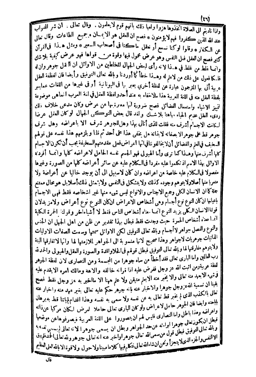 {وَإِذا نَادَيْتُمْ إِلَى الصَّلَاة اتَّخَذُوهَا هزوا وَلَعِبًا ذَلِك بِأَنَّهُم قوم لَا يعْقلُونَ} وَقَالَ تَعَالَى {إِن شَرّ الدَّوَابّ عِنْد الله الَّذين كفرُوا فهم لَا يُؤمنُونَ} فصح أَن الْعقل هُوَ الْإِيمَان وَجَمِيع الطَّاعَات وَقَالَ تَعَالَى عَن الْكفَّار {وَقَالُوا لَو كُنَّا نسْمع أَو نعقل مَا كُنَّا فِي أَصْحَاب السعير} وَمثل هَذَا فِي الْقُرْآن كثير فصح أَن الْعقل فعل النَّفس وَهُوَ عرض مَحْمُول فِيهَا وَقُوَّة من قواها فَهُوَ عرض كَيْفيَّة بِلَا شكّ وَإِنَّمَا غلط من غلط فِي هَذَا لِأَنَّهُ رأى لبَعض الْجُهَّال المخلطين من الْأَوَائِل أَن القل جَوْهَر وَأَن لَهُ فلكاً فعول على ذَلِك من لَا علم لَهُ وَهَذَا خطأ كَمَا أوردنا وَبِاللَّهِ تَعَالَى التَّوْفِيق وَأَيْضًا فَإِن لَفْظَة الْعقل عَرَبِيَّة أَتَى بهَا المترجمون عبارَة عَن لَفْظَة أُخْرَى يعبر بهَا فِي اليونانية أَو فِي غَيرهَا من اللُّغَات عَمَّا يعبر بِلَفْظَة الْعقل عَنهُ فِي اللُّغَة الْعَرَبيَّة هَذَا مَا لَا خَفَاء بِهِ عِنْد أحد وَلَفْظَة الْعقل فِي لُغَة الْعَرَب إِنَّمَا هِيَ مَوْضُوعَة لتمييز الْأَشْيَاء وَاسْتِعْمَال الْفَضَائِل فصح ضَرُورَة أَنَّهَا معبرة بهَا عَن عرض وَكَانَ مدعى خلاف ذَلِك رَدِيء الْعقل عديم الْحيَاء مباهتاً بِلَا شكّ وَلَقَد قَالَ بعض النوكي الْجُهَّال لَو كَانَ الْعقل عرضا لكَانَتْ الْأَجْسَام أشرف مِنْهُ فَقلت للَّذي أَتَانِي بِهَذَا وَهل للجوهر شرف إِلَّا بأعراضه وَهل شرف جَوْهَر قطّ على جَوْهَر إِلَّا بصفاته لَا بِذَاتِهِ هَل يخفى هَذَا على أحد ثمَّ قُلْنَا ويلزمهم هَذَا نَفسه على قَوْلهم السخيف فِي الْعلم والفضائل أَن لَا يخالفوننا فِي أَنَّهَا أَعْرَاض فعلي مقدمتهم السخيفة يجب أَن تكون الْأَجْسَام كلهَا اشرف مِنْهَا وَهَذَا كَمَا ترى وَأما الهيولى فَهُوَ الْجِسْم نَفسه الْحَامِل لأعراضه كلهَا وَإِنَّمَا أفردته الْأَوَائِل بِهَذَا الِاسْم إِذْ تكلمُوا عَلَيْهِ مُفردا فِي الْكَلَام عَلَيْهِ عَن سَائِر أعراضه كلهَا من الصُّورَة وَغَيرهَا مَفْصُولًا فِي الْكَلَام عَلَيْهِ خَاصَّة عَن أعراضه وَإِن كَانَ لَا سَبِيل إِلَى أَن يُوجد خَالِيا عَن أعراضه وَلَا متعرياً مِنْهَا أصلا وَلَا يتَوَهَّم وجوده كَذَلِك وَلَا يتشكل فِي النَّفس وَلَا يتَمَثَّل ذَلِك أصلا بل هُوَ محَال مُمْتَنع جملَة كَمَا أَن الْإِنْسَان الْكُلِّي وَجَمِيع الْأَجْنَاس والأنواع لَيْسَ شَيْء مِنْهَا غير أشخاصه فَقَط فَهِيَ الْأَجْسَام بِأَعْيَانِهَا إِن كَانَ النَّوْع نوع أجسام وَهِي أشخاص الْأَعْرَاض إِن كَانَ النَّوْع نوع أَعْرَاض وَلَا مزِيد لِأَن قَوْلنَا الْإِنْسَان الْكُلِّي يزِيد النَّوْع إِنَّمَا مَعْنَاهُ أشخاص النَّاس فَقَط لَا أَشْيَاء أخر وَقَوْلنَا الْحمرَة الْكُلية إِنَّمَا مَعْنَاهُ أشخاص الْحمرَة حَيْثُ وجدت فَقَط فَبَطل بِهَذَا تَقْدِير من ظن من أهل الْجَهْل أَن الْجِنْس وَالنَّوْع والفصل جَوَاهِر لَا أجسام وَبِاللَّهِ تَعَالَى التَّوْفِيق لَكِن الْأَوَائِل سمتها وسمت الصِّفَات الأوليات الذاتيات جوهريات لَا جَوَاهِر وَهَذَا صَحِيح لِأَنَّهَا منسوبة إِلَى الْجَوَاهِر لملازمتها لَهَا وَأَنَّهَا لَا تفارقها الْبَتَّةَ وَلَا يتَوَهَّم مفارقتها لَهَا وَبِاللَّهِ تَعَالَى التَّوْفِيق فَبَطل قَوْلهم فِي الخلا والمدة وَالصُّورَة وَالْعقل والهيولى وَالْحَمْد لله رب الْعَالمين وَأما الْبَارِي تَعَالَى فقد أَخطَأ من سَمَّاهُ جوهراً من المجسمة وَمن النَّصَارَى لِأَن لَفْظَة الْجَوْهَر لَفْظَة عَرَبِيَّة وَمن أثبت الله عز وَجل فَفرض عَلَيْهِ إِذا قرانه خالقه وإلاهه وَمَالك أمره أَلا يقدم عَلَيْهِ فِي شَيْء إِلَّا بِعَهْد مِنْهُ تَعَالَى وَإِلَّا يخبر عَنهُ إِلَّا بِعلم مُتَيَقن وَلَا علم هَهُنَا إِلَّا مَا