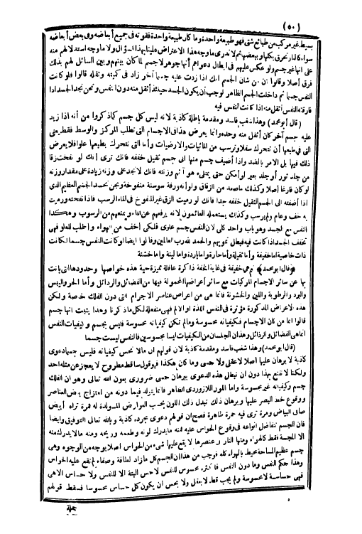 قَالَ أَبُو مُحَمَّد وَهَذَا شغب فَاسد ومقدمة بَاطِلَة كَاذِبَة لِأَنَّهُ لَيْسَ كل جسم كَمَا ذكرُوا من أَنه إِذا زيد عَلَيْهِ جسم آخر كَانَ أثقل مِنْهُ وَحده وَإِنَّمَا يعرض هَذَا فِي الْأَجْسَام الَّتِي تطلب المركز وَالْوسط فقطيعتي الَّتِي فِي طبعها أَن تتحرك سفلاً وترسب من المائيات والأرضيات وَأما الَّتِي تتحرك بطبعها علوا فَلَا يعرض ذَلِك فِيهَا بل الْأَمر بالضد وَإِذا أضيف جسم مِنْهَا إِلَى جسم ثقيل خففه فَإنَّك ترى أَنَّك لَو نفخت زقا من جلد ثَوْر أَو جلد بعير أَو أمكن حَتَّى يمتلئ هُوَ آثم وزنته فَإنَّك لَا نجد على وَزنه زِيَادَة على مِقْدَار وَزنه لَو كَانَ فَارغًا أصلا وَكَذَلِكَ مَا صعد من الزقاق وَلَو أَنه ورقة سوسنة منفوخة وَنحن نحسد الْجِسْم الْعَظِيم الَّذِي إِذا أضفته إِلَى الْجِسْم الثقيل خففه جدا فَإنَّك لَو رميت الزق غير المنفوخ فِي المَاء الرسب فَإِذا نفخته ورميت بِهِ خف وعام وَلم يرسب وَكَذَلِكَ يَسْتَعْمِلهُ العائمون لِأَنَّهُ يرفعهم عَن المَاء ويمنعهم من الرسوب وَهَكَذَا النَّفس مَعَ الْجَسَد وَهُوَ بَاب وَاحِد كلى لِأَن النَّفس جسم علوي فلكي أخف من الْهَوَاء وأطلب للعلو فَهِيَ تخفف الْجَسَد إِذا كَانَت فِيهِ فَبَطل تمويهم وَالْحَمْد لله رب الْعَالمين وَقَالُوا أَيْضا لَو كَانَت النَّفس جسماً لكَانَتْ ذَات خاصية إِمَّا خَفِيفَة وَإِمَّا ثَقيلَة وَإِمَّا حارة وَإِمَّا بَارِدَة وَإِمَّا لينَة وَإِمَّا خشنة