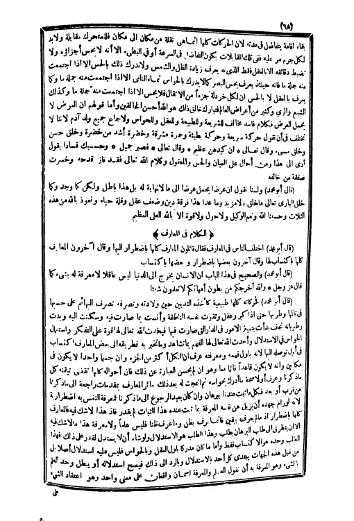 قَالَ أَبُو مُحَمَّد ولسنا نقُول أَن عرضا يحمل عرضا إِلَى مَا لَا نِهَايَة لَهُ بل هَذَا بَاطِل وَلَكِن كَمَا وجد وكما خلق الْبَارِي تَعَالَى مَا خلق وَلَا مزِيد وَمَا عدا هَذَا فرقة دين وَضعف عقل وَقلة حَيَاء ونعوذ بِاللَّه من هَذِه الثَّلَاث وحسبنا الله وَنعم الْوَكِيل وَلَا حول وَلَا قُوَّة إِلَّا بِاللَّه الْعلي الْعَظِيم
