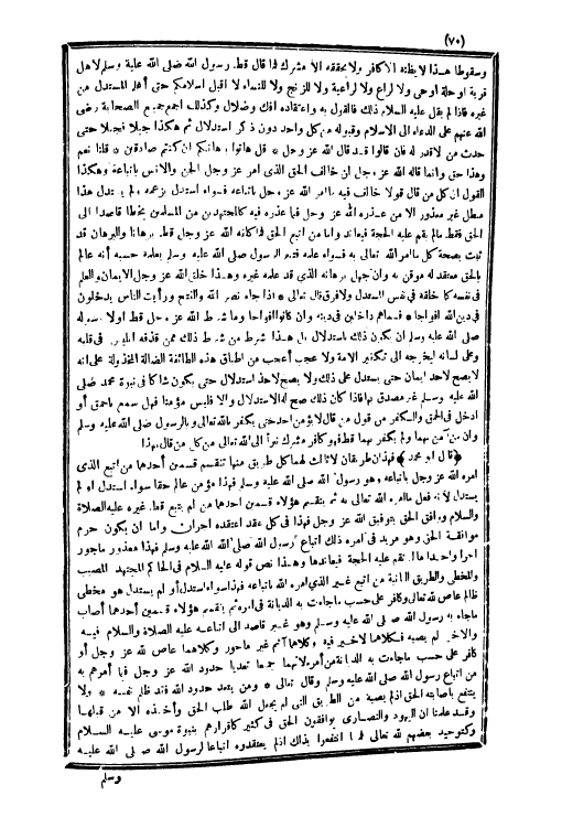 وسقوطاً هَذَا لَا يَظُنّهُ إِلَّا كَافِر وَلَا يحققه إِلَّا مُشْركًا فَمَا قَالَ فَقَط رَسُول الله صلى الله عَلَيْهِ وَسلم لأهل قَرْيَة أَو حلَّة أَو حَيّ وَلَا لراع وَلَا لراعية وَلَا للزنج وَلَا للنِّسَاء لَا أقبل إسلامكم حَتَّى أعلم الْمُسْتَدلّ من غَيره فَإِذا لم يقبل عَلَيْهِ السَّلَام ذَلِك فَالْقَوْل بِهِ واعتقاده افك وضلال وَكَذَلِكَ أجمع جَمِيع الصَّحَابَة رَضِي الله عَنْهُم على الدُّعَاء على الْإِسْلَام وقبوله من كل وَاحِد دون ذكر اسْتِدْلَال ثمَّ هَكَذَا جيلاً فجيلاً حَتَّى حدث من لَا قدر لَهُ فَإِن قَالُوا قد قَالَ الله عز وَجل {قل هاتوا برهانكم إِن كُنْتُم صَادِقين} قُلْنَا نعم وَهَذَا حق وَإِنَّمَا قَالَه الله عز وَجل لن خَالف الْحق الَّذِي أَمر عز وَجل الْجِنّ والأنس باتباعه وَهَكَذَا القَوْل إِن كل من قَالَ قولا خَالف فِيهِ مَا أَمر الله عز وَجل باتباعه فَسَوَاء اسْتدلَّ بِزَعْمِهِ وَلم يسْتَدلّ هَذَا مُبْطل غير مَعْذُور إِلَّا من عذره الله عز وَجل فبمَا عذره فِيهِ كالمجتهدين من الْمُسلمين يخطأ قَاصِدا إِلَى الْحق فَقَط مَا لم يقم عَلَيْهِ الْحجَّة فيعاند وَأما من اتبع الْحق فَمَا كلفه الله عز وَجل قطّ برهاناً والبرهان قد ثَبت بِصِحَّة كل مَا أَمر الله تَعَالَى بِهِ فَسَوَاء علمه فتبع الرَّسُول صلى الله عَلَيْهِ وَسلم بِعِلْمِهِ حَسبه أَنه عَالم بِالْحَقِّ مُعْتَقد لَهُ موقن بِهِ وَإِن جهل برهانه الَّذِي قد علمه غَيره وَهَذَا خلق الله عز وَجل الْإِيمَان وَالْعلم فِي نَفسه كَمَا خلقه فِي نفس الْمُسْتَدلّ وَلَا فرق قَالَ تَعَالَى {إِذا جَاءَ نصر الله وَالْفَتْح وَرَأَيْت النَّاس يدْخلُونَ فِي دين الله أَفْوَاجًا} فسماهم داخلين فِي دينه وَإِن كَانُوا أَفْوَاجًا وَمَا شَرط الله عز وَجل قطّ أَولا رَسُوله صلى الله عَلَيْهِ وَسلم أَن يكون ذَلِك باستدلال بل هَذَا شَرط من شَرط ذَلِك مِمَّن قذفه إِبْلِيس فِي قلبه وعَلى لِسَانه ليخرجه إِلَى تَكْفِير الْأمة وَلَا عجب أعجب من اطباق هَذِه الطَّائِفَة الضَّالة المخذولة على أَنه لَا يَصح لأحد إِيمَان حَتَّى يسْتَدلّ على ذَلِك وَلَا يَصح لأحد اسْتِدْلَال حَتَّى يكون شاكا فِي نبوة مُحَمَّد صلى الله عَلَيْهِ وَسلم غير مُصدق بهَا فَإِذا كَانَ ذَلِك صَحَّ لَهُ الِاسْتِدْلَال وَإِلَّا فَلَيْسَ مُؤمنا فَهَل سمع بأحمق أَو أَدخل فِي الْحمق وَالْكفْر من قَول من قَالَ لَا يُؤمن أحد حَتَّى يكفر بِاللَّه تَعَالَى وبالرسول صلى الله عَلَيْهِ وَسلم وَإِن من آمن بهما وَلم يكفر بهما قطّ فَهُوَ كَافِر مُشْرك نبرأ إِلَى الله تَعَالَى من كل من قَالَ بِهَذَا