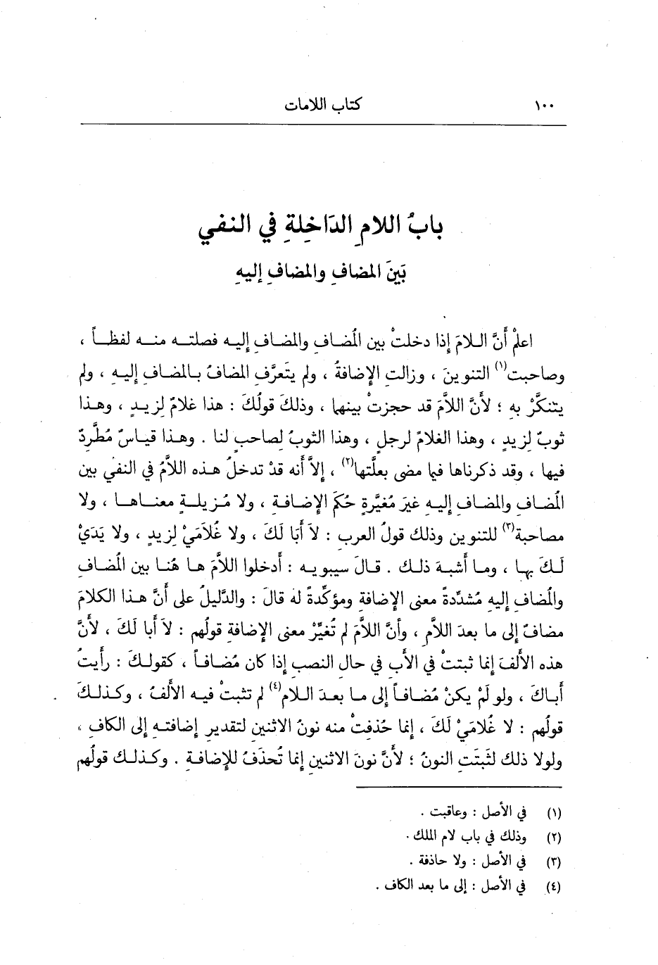 باب اللام الداخلة في النفي بين المضاف والمضاف إليه