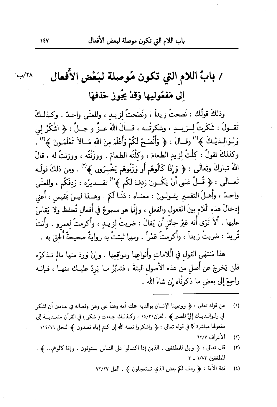 باب اللام التي تكون موصلة لبعض الأفعال إلى مفعوليها وقد يجوز حذفها