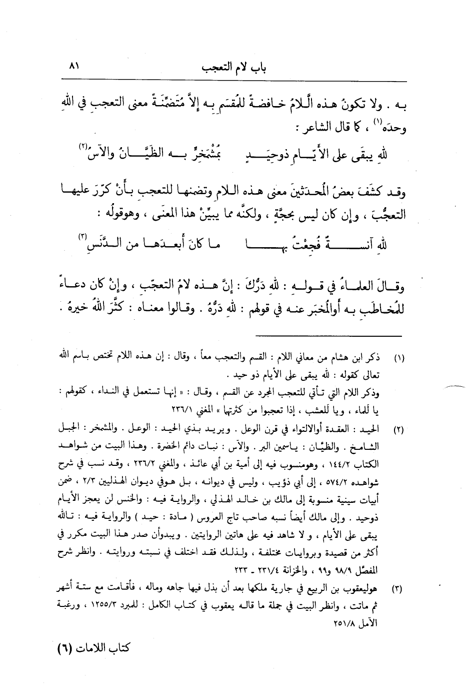 به ولا تكون هذه اللام خافضة للمقسم به إلا متضمنة معنى التعجب في الله وحده كما، قال الشاعر: