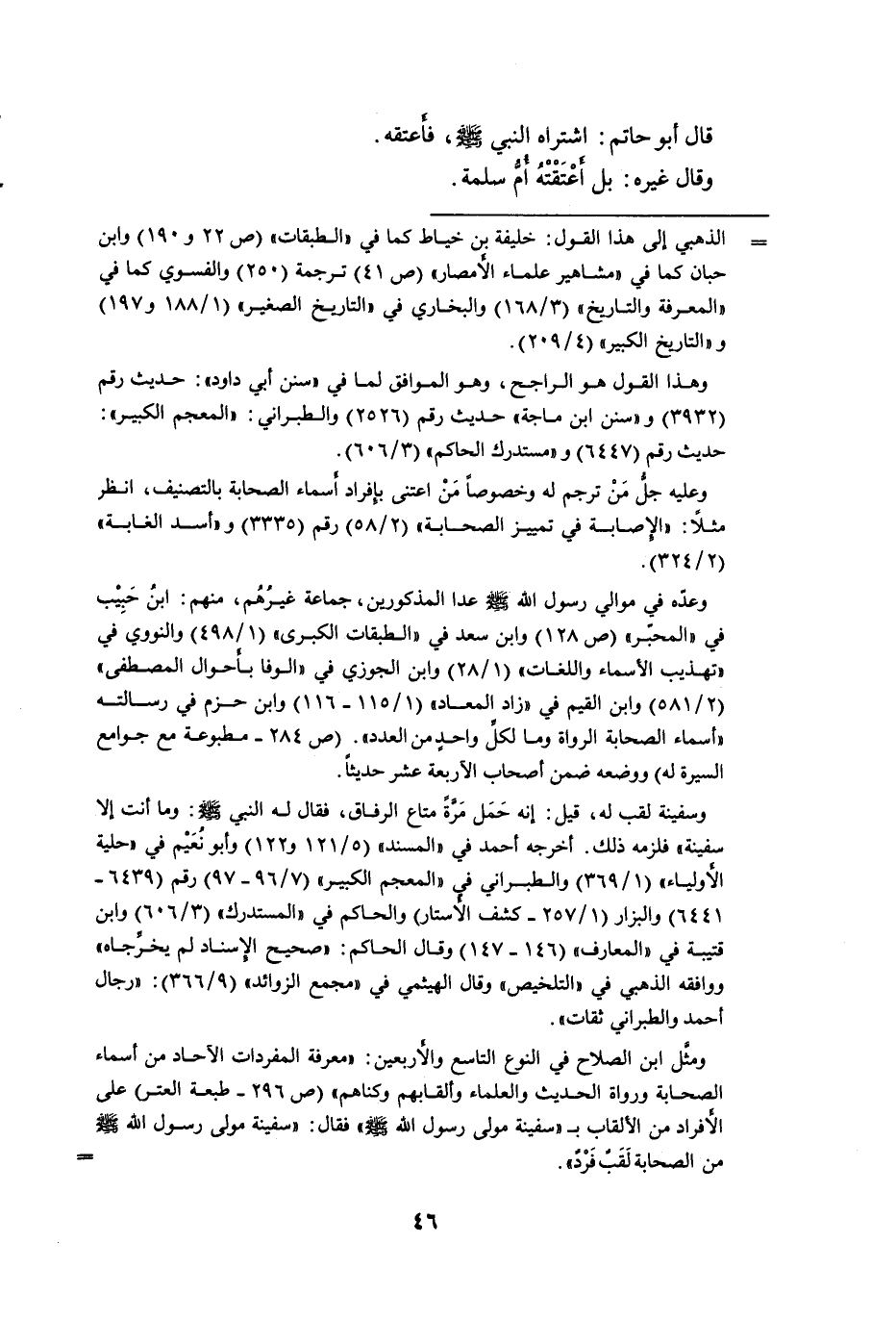 53 - زيد جد هِلَال بن يسَار كَذَا ذكره الدَّمِيرِيّ تبعا لغيره وَهُوَ ابْن بولا 54 - زيد أحد مَا قيل فِي إسم أبي رَافع القبطي 55 - سَابق أَبُو سَلام الْهَاشِمِي وهم خَليفَة بن خياط فِي ذكره فِي الموَالِي بل فِي الصَّحَابَة مُطلقًا والْحَدِيث إِنَّمَا هُوَ عَن سَابق بن نَاجِية عَن خَادِم النَّبِي صلى الله عَلَيْهِ وَسلم كَمَا فِي السّنَن فَسَقَطت عَن