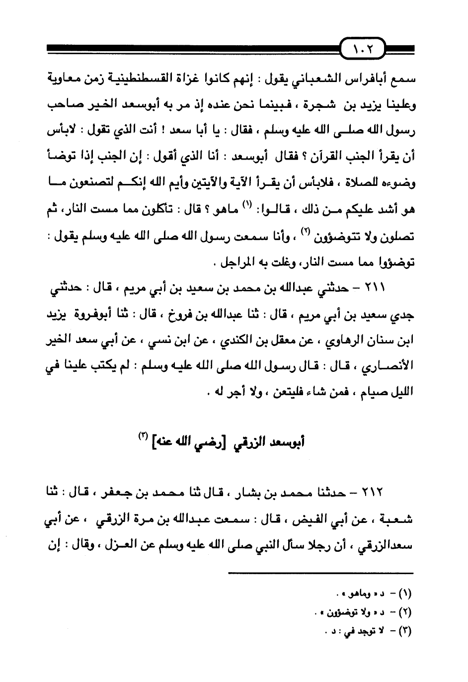 211 - حَدَّثَنِي عَبْدُ اللَّهِ بْنُ مُحَمَّدِ بْنِ سَعِيدِ بْنِ أَبِي مَرْيَمَ قَالَ: حَدَّثَنِي جَدِّي سَعِيدُ بْنُ أَبِي مَرْيَمَ قَالَ:، ثَنَا عَبْدُ اللَّهِ بْنُ فَرُّوخَ قَالَ:، ثَنَا أَبُو فَرْوَةَ يَزِيدُ بْنُ سِنَانٍ الرَّهَاوِيُّ، عَنْ مَعْقِلِ بْنِ الْكِنْدِيِّ عَنِ ابْنِ نَسِيٍّ عَنْ أَبِي سَعْدِ الْخَيْرِ الْأَنْصَارِيِّ قَالَ: قَالَ رَسُولُ اللَّهِ صَلَّى اللهُ عَلَيْهِ وَسَلَّمَ: «§لَمْ يُكْتَبْ عَلَيْنَا فِي اللَّيْلِ صِيَامٌ فَمَنْ شَاءَ فَلْيَتَعَنَّ وَلَا أَجْرَ لَهُ»
