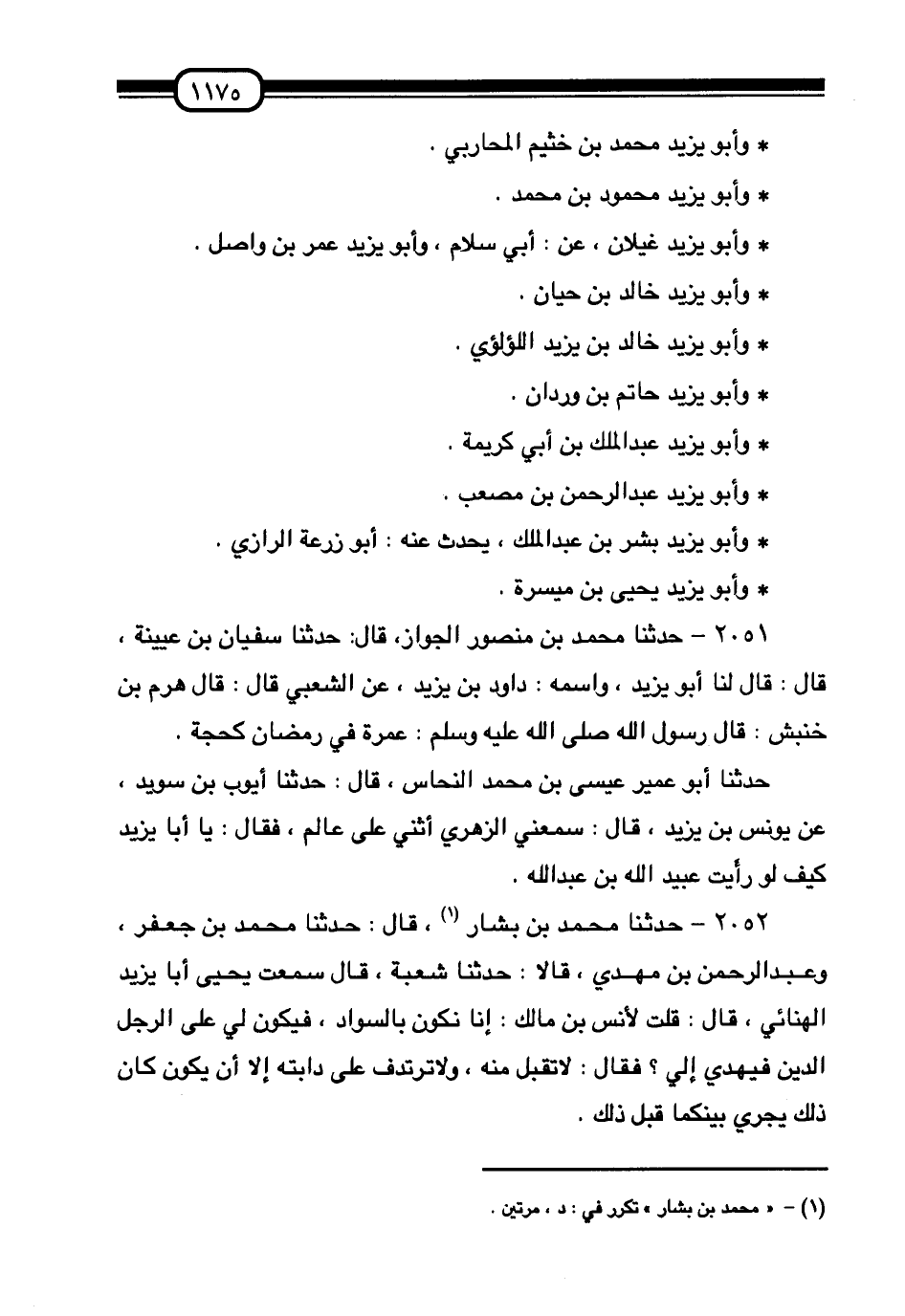 2051 - حَدَّثَنَا مُحَمَّدُ بْنُ مَنْصُورٍ الْجَوَّازُ، قَالَ: حَدَّثَنَا سُفْيَانُ بْنُ عُيَيْنَةَ، قَالَ: قَالَ لَنَا أَبُو يَزِيدَ وَاسْمُهُ دَاوُدُ بْنُ يَزِيدَ عَنِ الشَّعْبِيِّ قَالَ: قَالَ هَرِمُ بْنُ خَنْبَشٍ: قَالَ رَسُولُ اللَّهِ صَلَّى اللهُ عَلَيْهِ وَسَلَّمَ: «§عُمْرَةٌ فِي رَمَضَانَ كَحَجَّةٍ» حَدَّثَنَا أَبُو عُمَيْرٍ عِيسَى بْنُ مُحَمَّدٍ النُّحَّاسُ قَالَ: حَدَّثَنَا أَيُّوبُ بْنُ سُوَيْدٍ، عَنْ يُونُسَ بْنِ يَزِيدَ قَالَ: سَمِعَنِي الزُّهْرِيُّ أُثْنِي عَلَى عَالِمٍ، فَقَالَ: «يَا أَبَا يَزِيدَ كَيْفَ لَوْ رَأَيْتَ عُبَيْدَ اللَّهِ بْنَ عَبْدِ اللَّهِ»